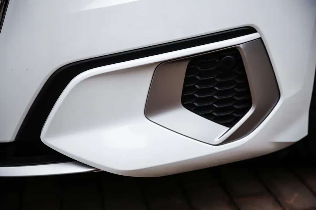 下部雾灯副进气格栅的多边形结构,如果运动版会更大一些,更具有奥迪RS的战斗感,呼应中网多边形的造型,让车头显得非常丰富和多层次。