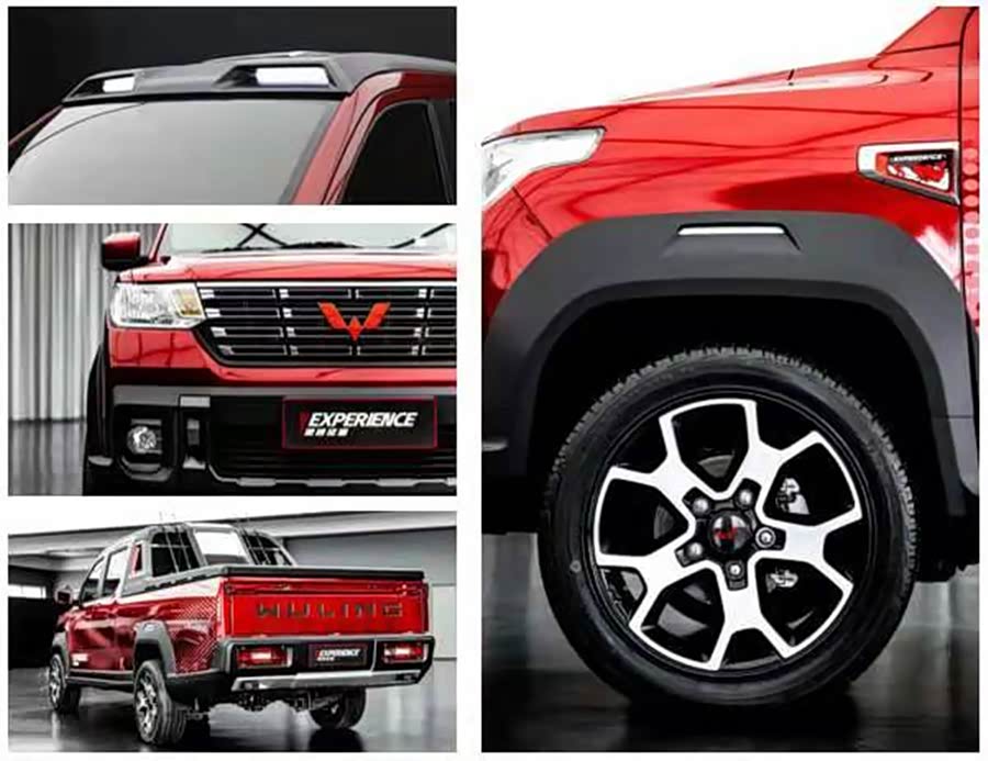 根据发布的实拍图片可以看到,新车整体采用了红色和黑色混搭的配色,前脸四边形的进气格栅由下向上延展,和五菱的LOGO搭配在一起,显得比较和谐,下方配有黑色哑光质感的前后防撞保险杠,提升功能性的同时,也增强了硬派气息。车顶还安装有两个探照灯,能够让夜间行驶更加便利。