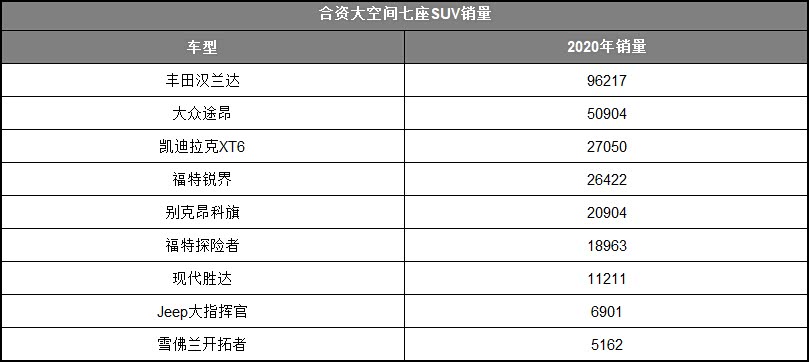 大空间七座SUV是很多人心目中二胎家庭理想车型,但从销售业绩上看,这个细分市场仅有少数车型热销,今天小猫就带您了解下热门合资大空间七座SUV在2020年的销量表现。