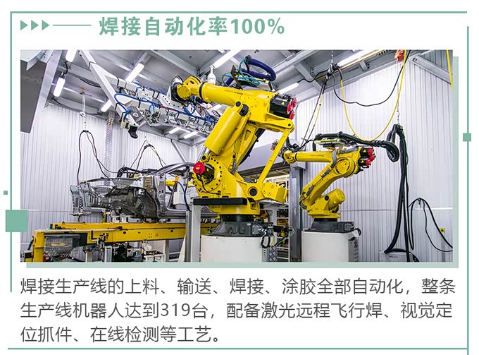 除了拥有特斯拉“同款”工艺的三电系统车间,这座工厂的其他车间完全向我们开放(涂装车间为视频实况展示),超1000台机器人协同运作实现高度自动化,可以说达到国内新一代整车制造工厂的领先水平。