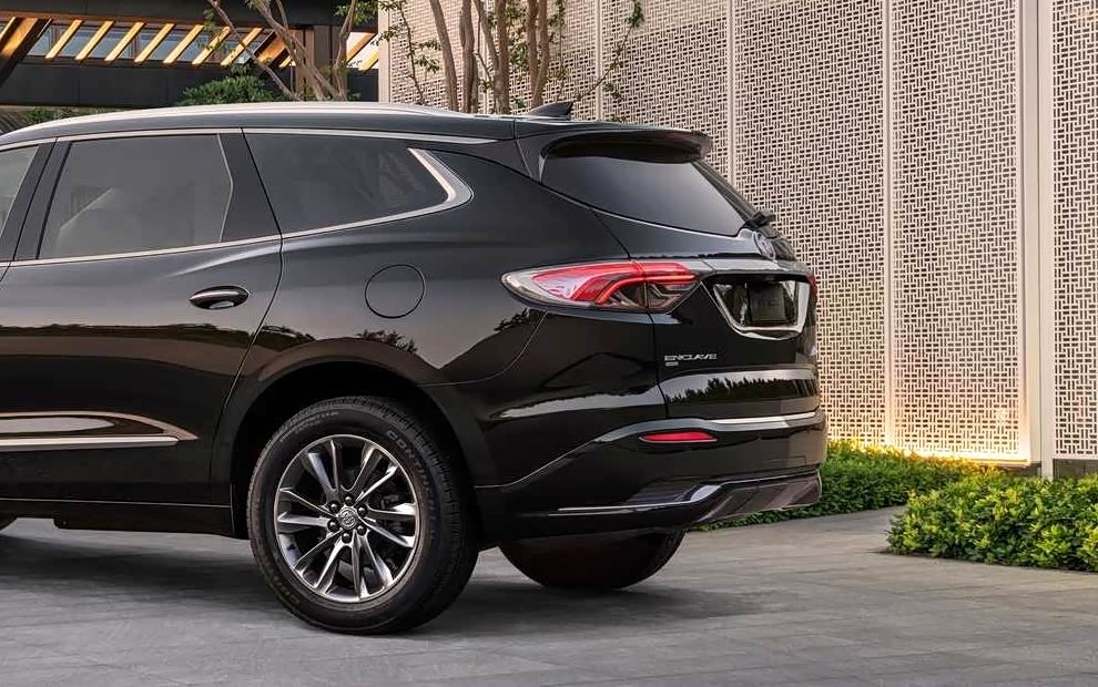 (现款昂科旗) 其他的细节上的变化,还包括取消了现款车型D柱的黑色装饰,这意味着新车没有延续老款的悬浮式车顶;新车似乎也取消了现款车型上的方形镀铬双排气管,改为隐藏式排气管,使得尾部保险杠更为简洁。