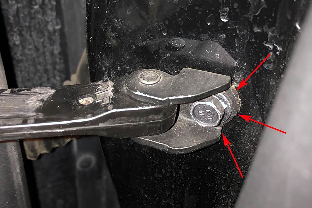 检查四个车门的固定螺丝和限位器部分均未发现拧动的痕迹。