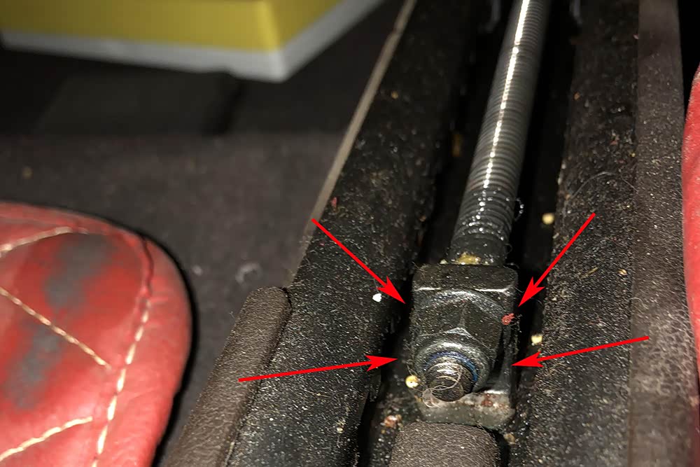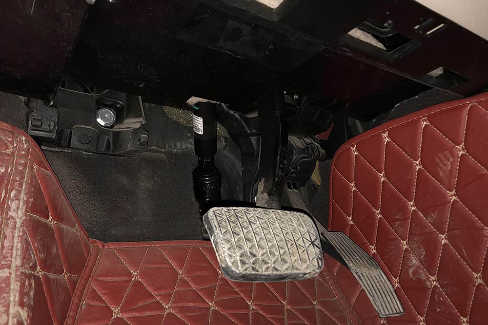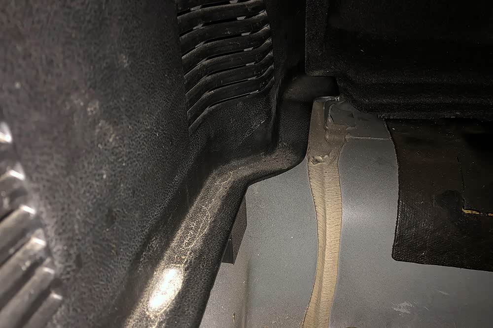 接着我们蹲下看驾驶座脚底部位未发现生锈及拆修的痕迹。