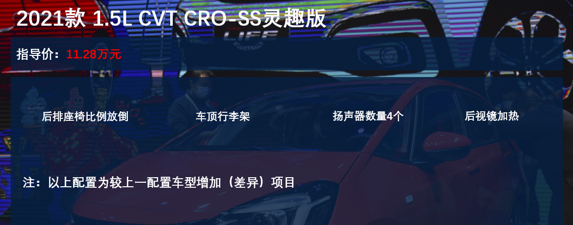 最后,2021款 1.5L CVT CRO-SS灵趣版车型作为顶配车型,在价格上比灵动版车型贵了0.4万元,但是配置方面的变化并不明显,所以说这款车型的性价比并不是很高,如果不是非要追求顶配的消费者,并不建议购买。