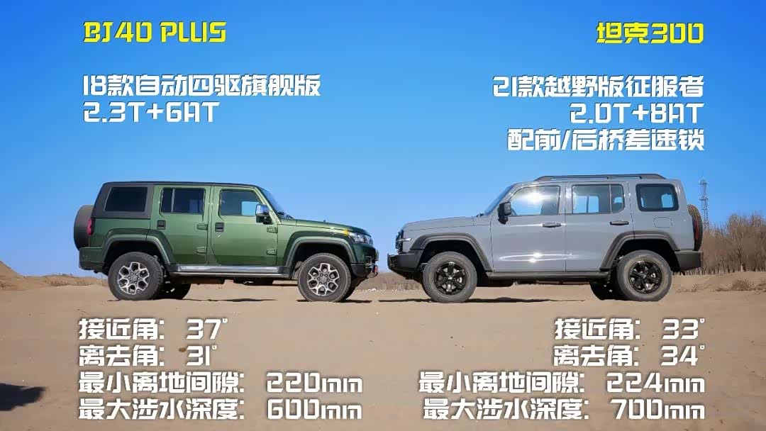 有一说一,从设计上来看,开放式的车顶、裸露的车门铰链以及更加锐利的直角线条,让BJ40在特定的场景下更具荒野气质,而坦克300预留的绞盘位、原厂自带的车顶行李架,使其具备了更强的拓展能力及玩乐属性,同时从一些细节表现上,也能看出两款车型存在的差异。