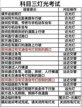 灯光:跟着模拟语音练就好,教练会提前发内容,没事的时候先在家练一练,自己模拟一下考试内容,想想该如何做。