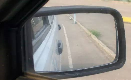 有些车辆后视镜是凸面镜,车身停正时,从后视镜中可以看到车身与边线并不完全平行,因为凸面镜会有视觉差,车尾与边线的距离较车前部分更窄时,车身才是正的,如下图所示。