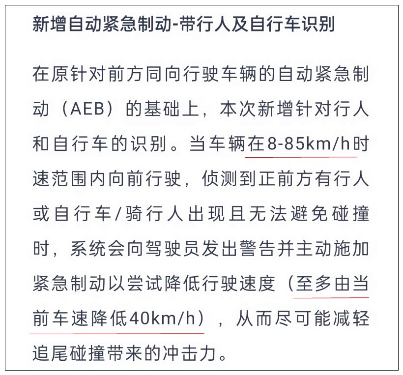 针对AEB系统,我们也不禁要问,既然AEB的工作区间为8-85km/h,那么在超过此速度区间时,是否需要完全由驾驶者判断路面风险,采取刹车行为?未来是否有扩大该系统工作速度区间,以及提升识别障碍物成功率的可能?