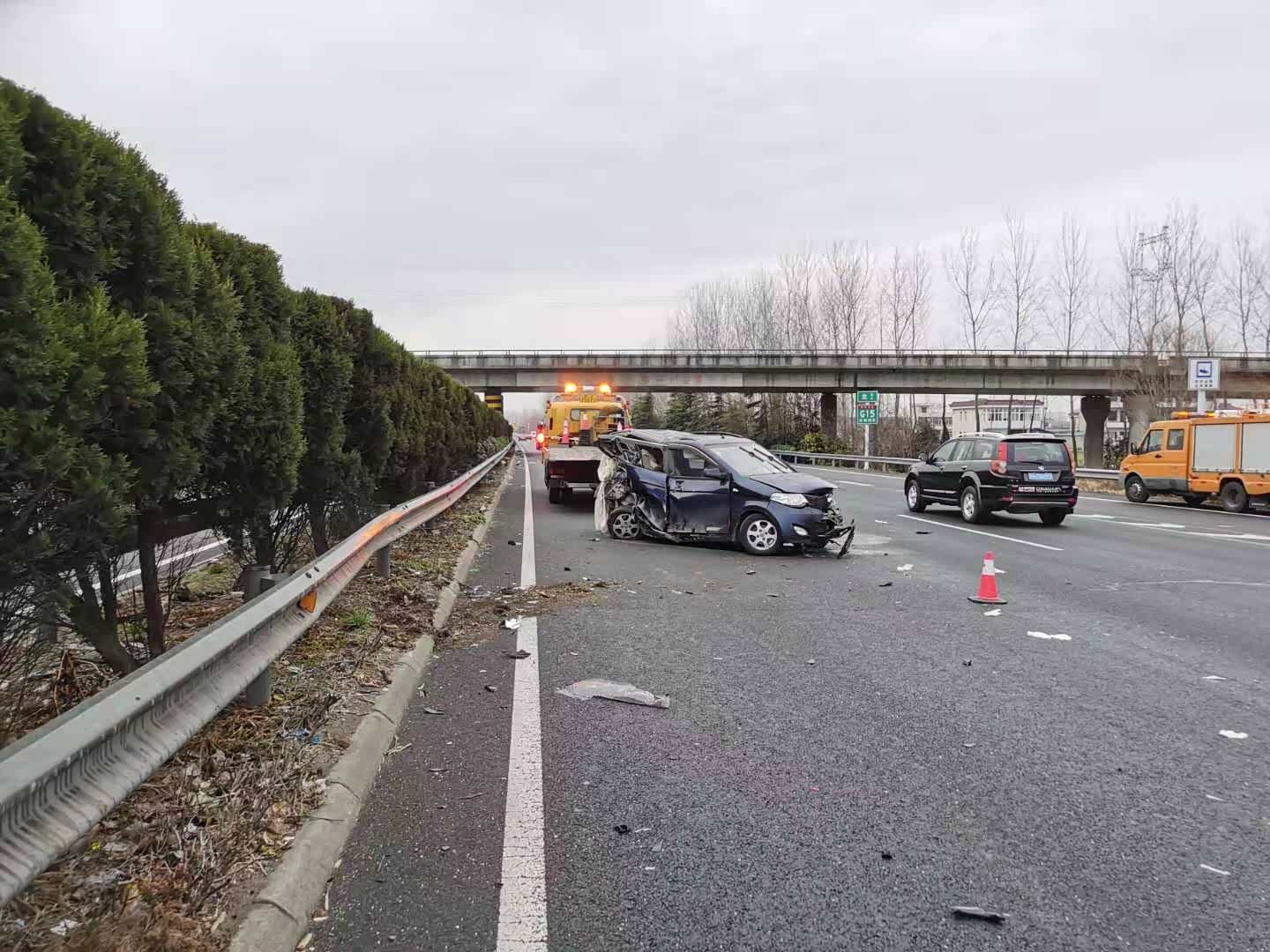 本次追尾事故发生在高速公路的最左侧车道,据传五菱宏光因爆胎停放在高速公路快车道,视频中还可以看到疑似是司机正尝试在路上设置警示标志,结果被高速驶来的ES8造成擦撞,情况相当危险。
