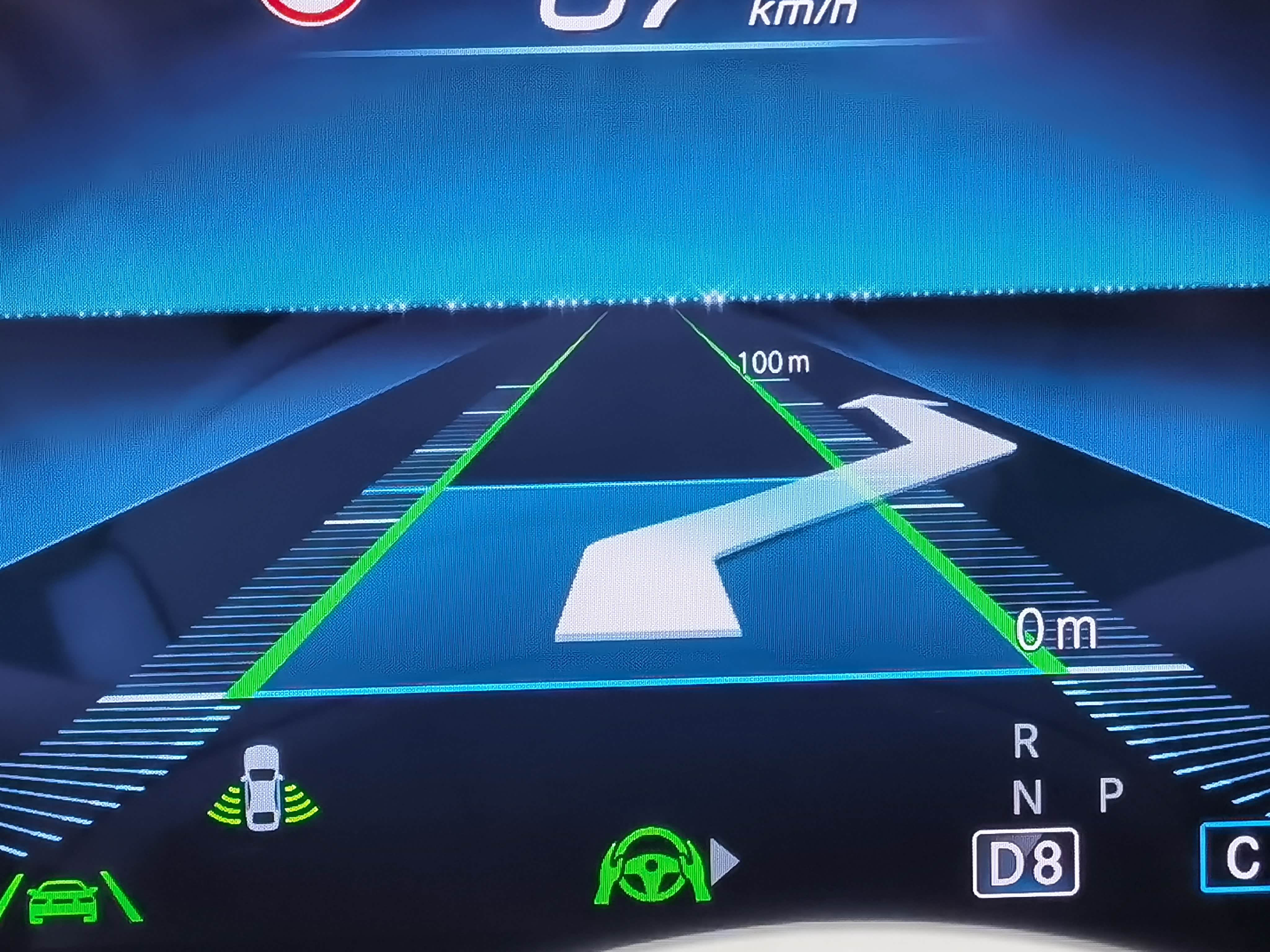 上路测试,在启用车道保持后和智能领航转向功能后,车辆会保持跟随车道或者前车自动保持车道行驶,双手可以短时间脱离方向盘,如果系统达到系统限制或驾驶员在相当长一段时间未转向或双手长时间离开方向盘,系统将根据具体情况首先向驾驶员发出视觉警告。多功能显示屏上会出现上图显示。如果驾驶员仍未自行转向或未握住方向盘,则除视觉警告信息外,还会反复响起警告音,以提醒驾驶员控制车辆。