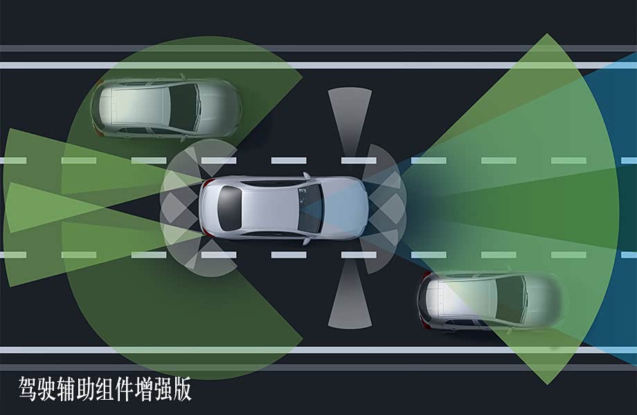 后方短距离盲点雷达,2个多功能雷达可侦测距离后方80m/30°范围,监视区域车速:12~200km/h。