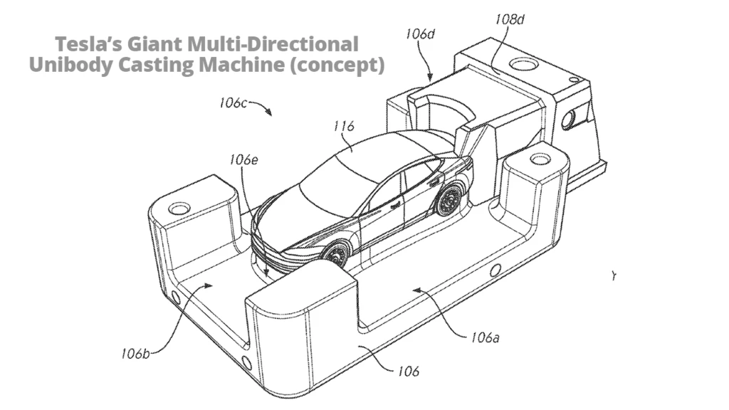 特斯拉巨型一体机专利Above: 特斯拉巨型单体铸造机的概念(来源:美国专利商标局/特斯拉;探索XAuto的完整专利)。