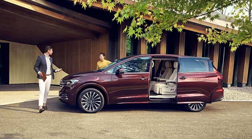 威然的侧面设计简洁流畅,和车头不同的是,侧面增加了些柔美的弧线,作为一台商务MPV,弧线能带来更多的亲和感。而作为商务车标志的电动侧滑门,威然也没落下。