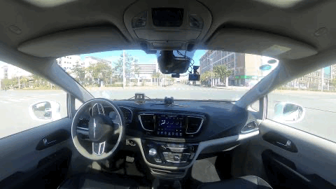 经历了红绿灯路口左转、躲避快递小车之后,AutoX无人车行驶到了无保护十字路口(无信号),无人车感知到无车辆通过时,它会平稳的完成无保护左转。