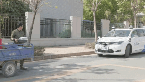 与此同时,前方还一个正在过马路的行人,该车会主动停车,等待行人通过,在行人通过时,AutoX无人车无抢道行为,从视频摄像机抖动来看,车辆刹车非常平稳。