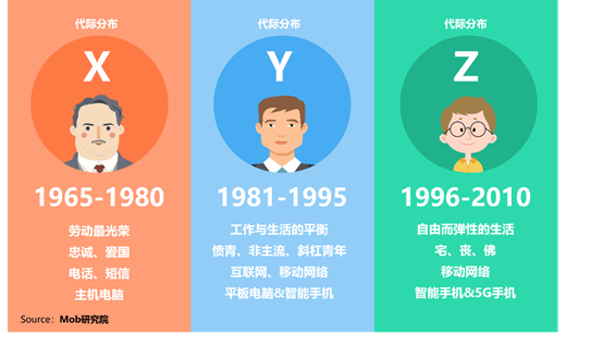 X-Y-Z的说法源于美国,以15年为一个区段。其中Y世代即是千禧一代,泛指1980-1995年出生的人,Z世代是指1995-2010年出生的人。以15年为划分,必然结合了美国的经济规律;而在中国,这套规律未必精准,但趋势类似。之所以Z世代的提法比Y世代更鲜明,很大程度上是因为20世纪前后,我们在互联网方面的脚步加快,这期间出生的中国孩子不枉“互联网原住民”之称,从小就接受了ACGN文化(动画-Animation、漫画-Comic、游戏-Game、Novel-小说)的影响。