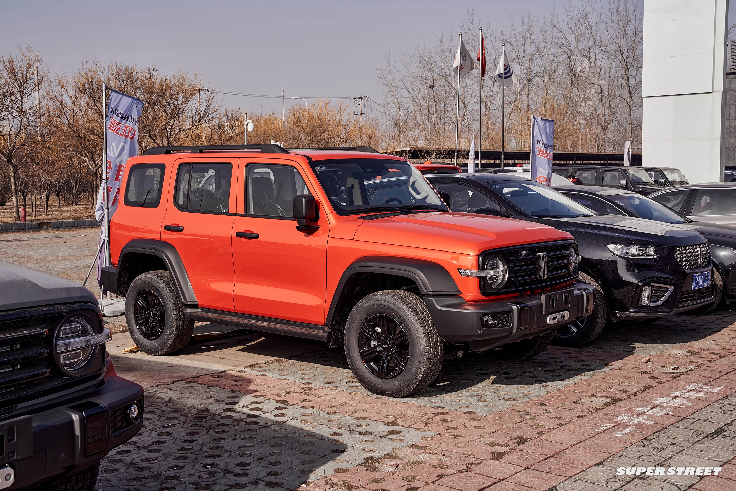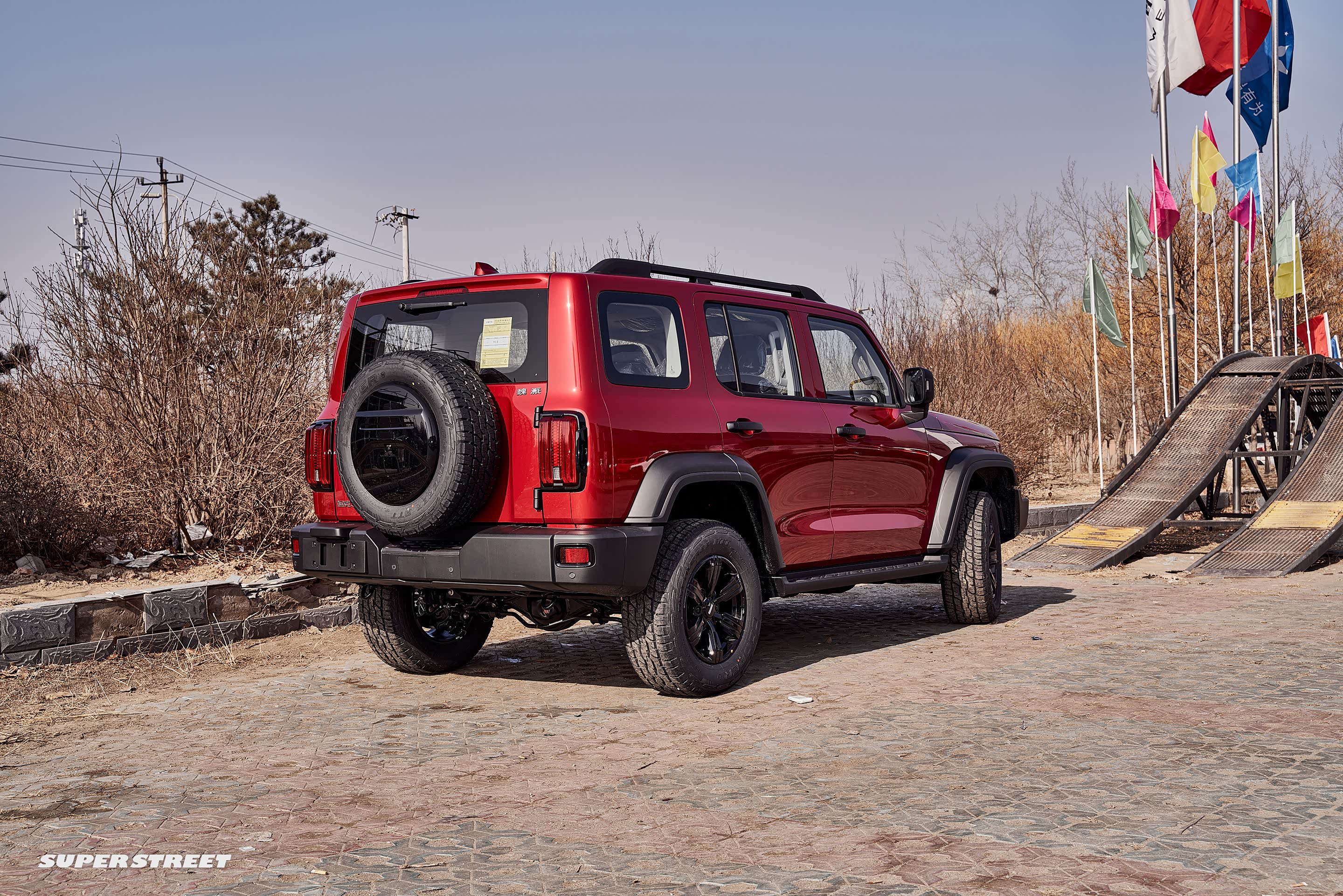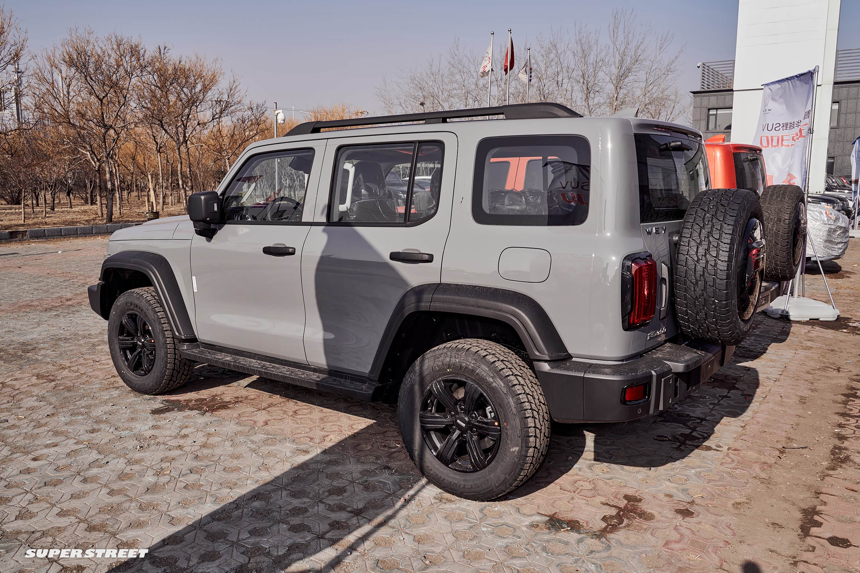 这台红色的坦克已经被买走了,可以看到前面已经加装了绞盘,这个红色车身比官图宣传的橙色车身更耐看一些,我非常喜欢。