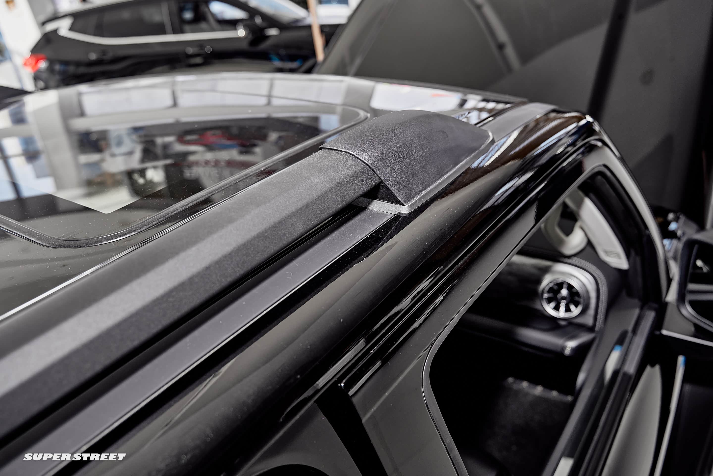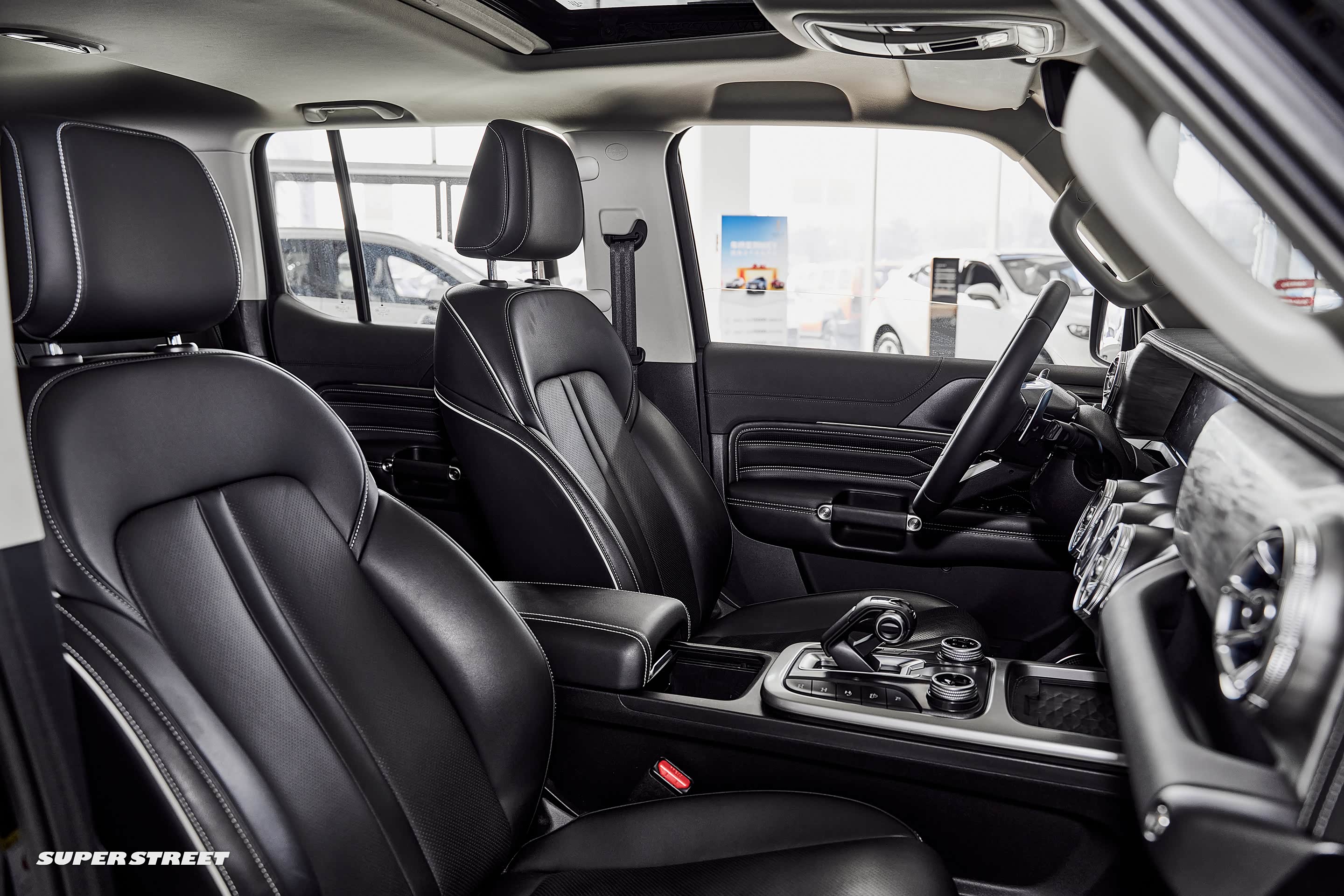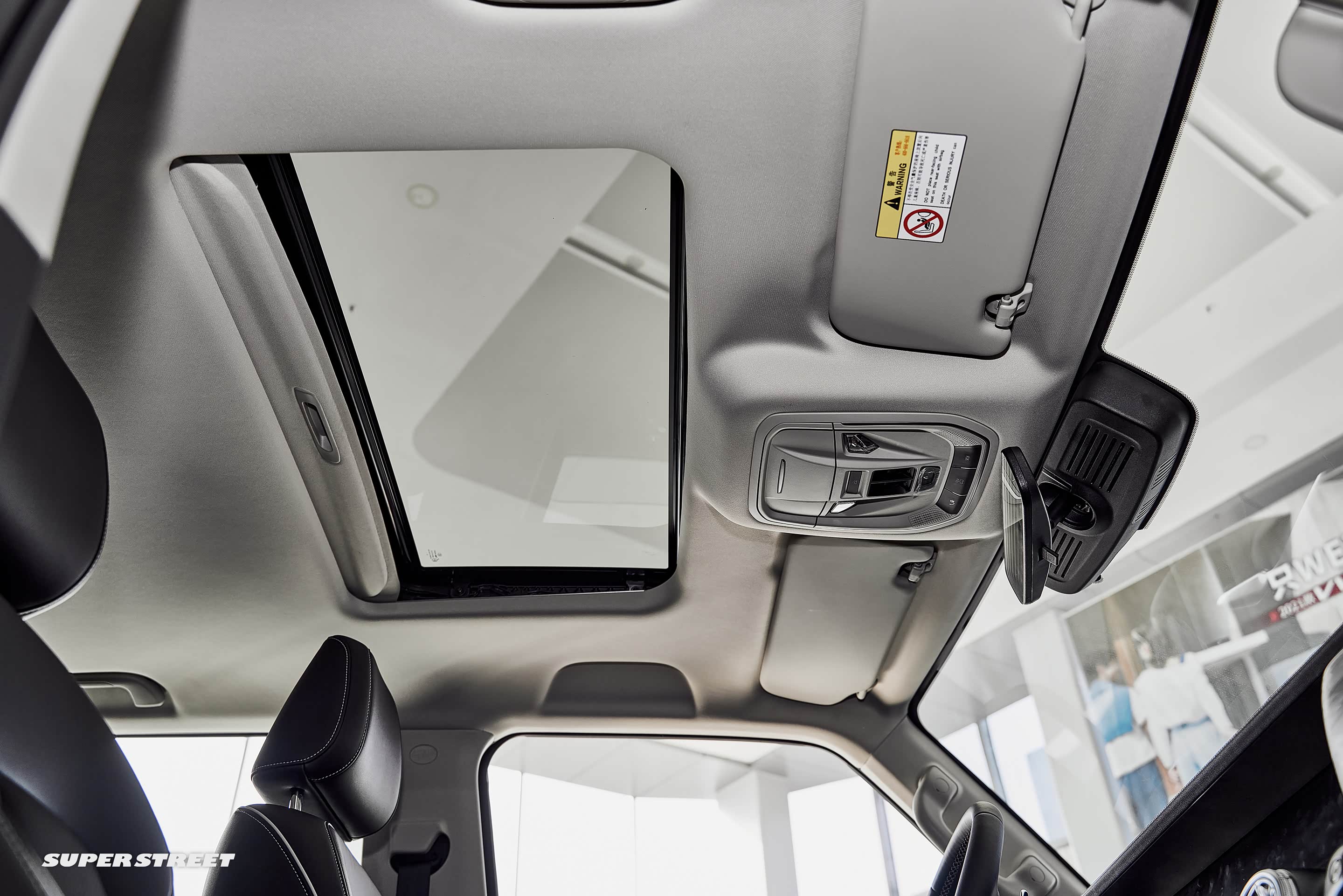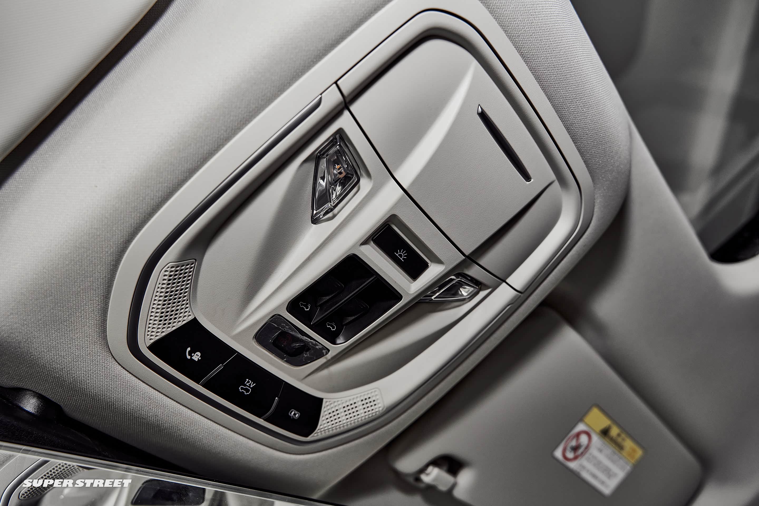 车顶的控制区域除了常规的眼镜盒,呼叫中心、天窗控制按钮和阅读灯外,车顶有一个12V电源开关,可以加装气泵等越野电子配件。