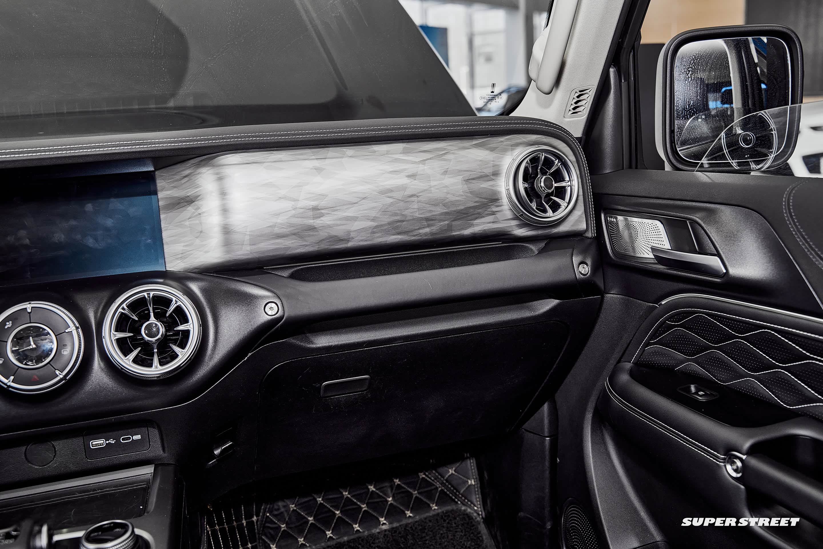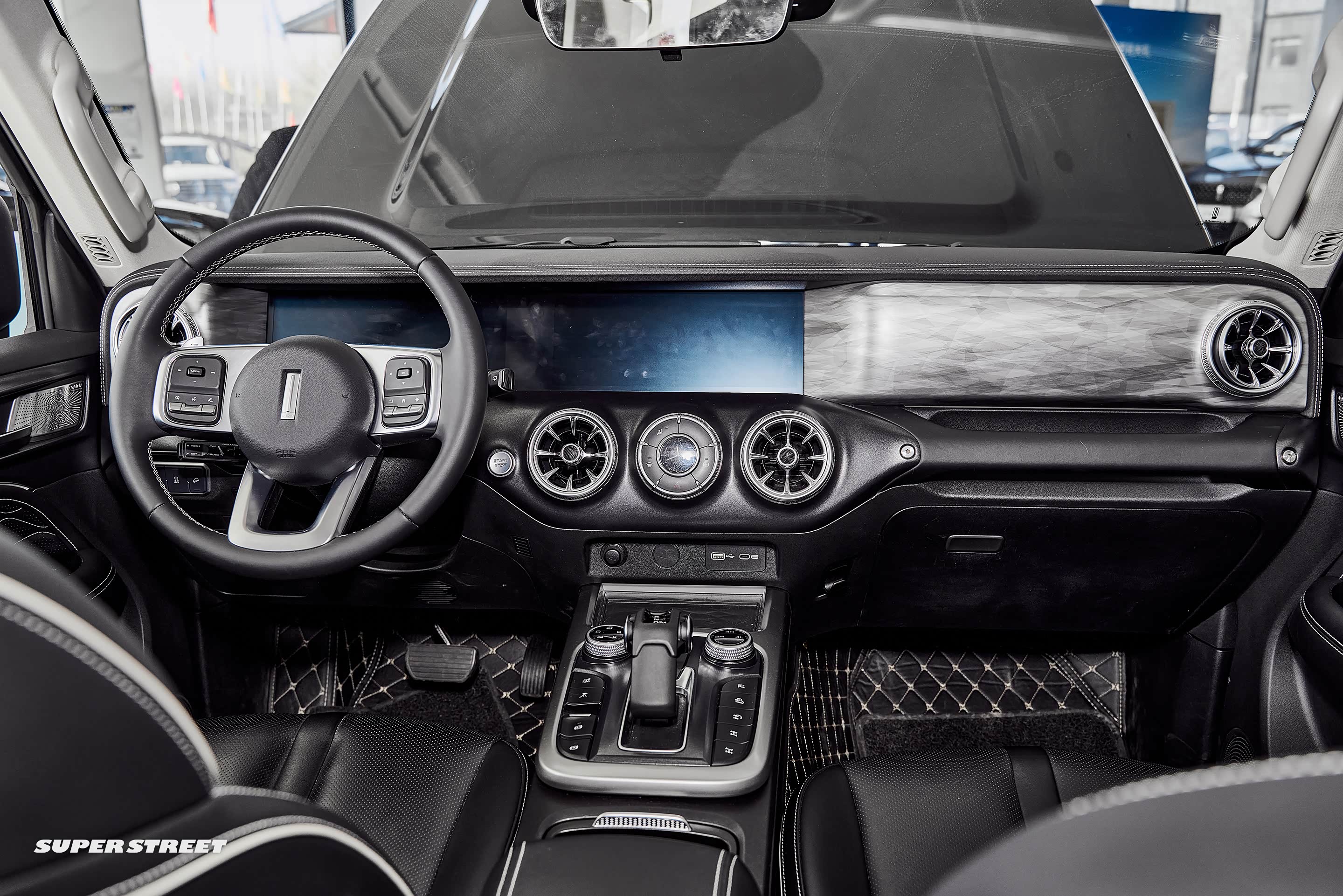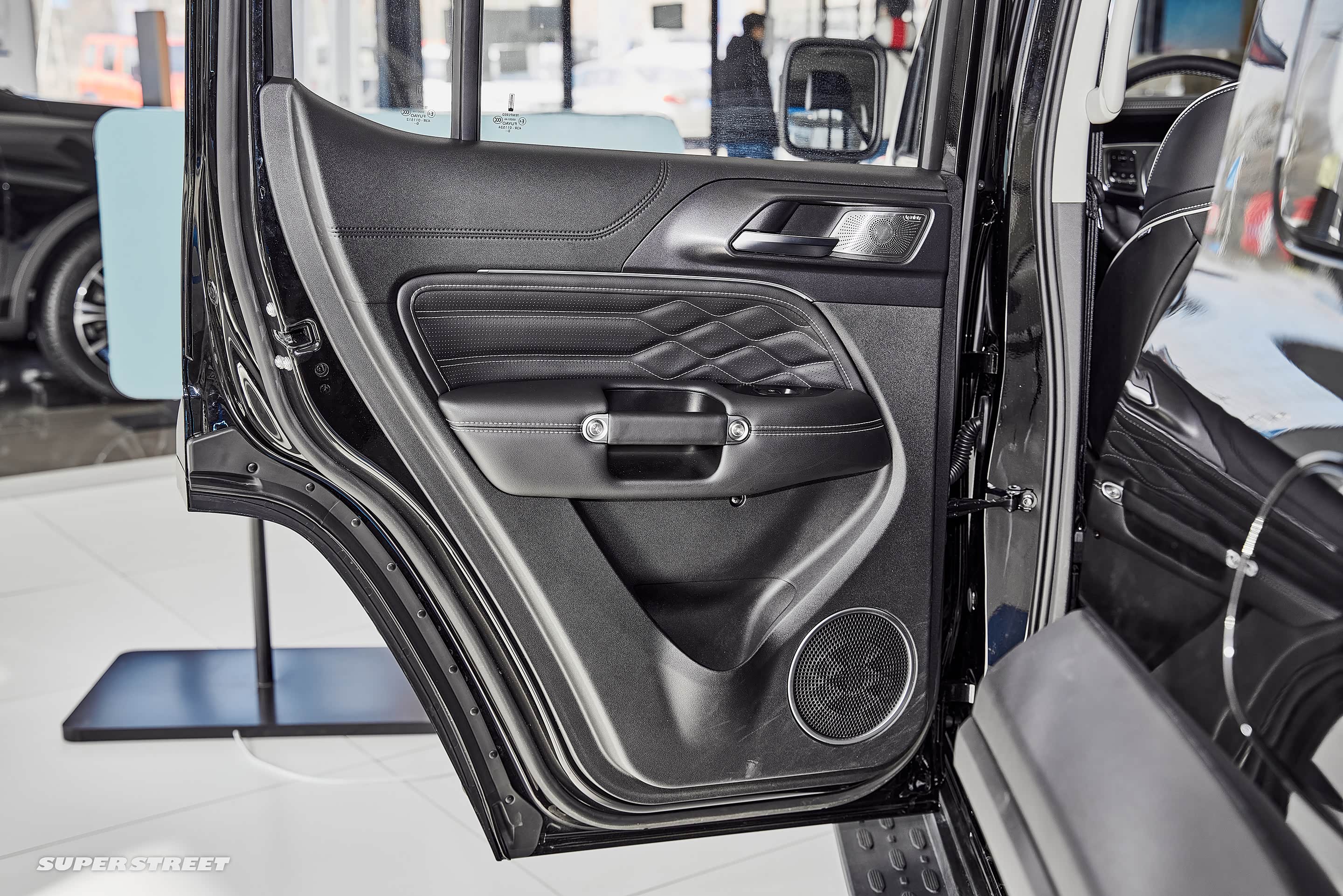 副驾驶设置了越野车型上常常会出现的前扶手,在越野路面还是很实用的,副驾驶前面的面板表面纹理像烟雾一样,看着还是很高级的,这里如果可以根据车主的喜好更换不同的面板那就更有特色了。