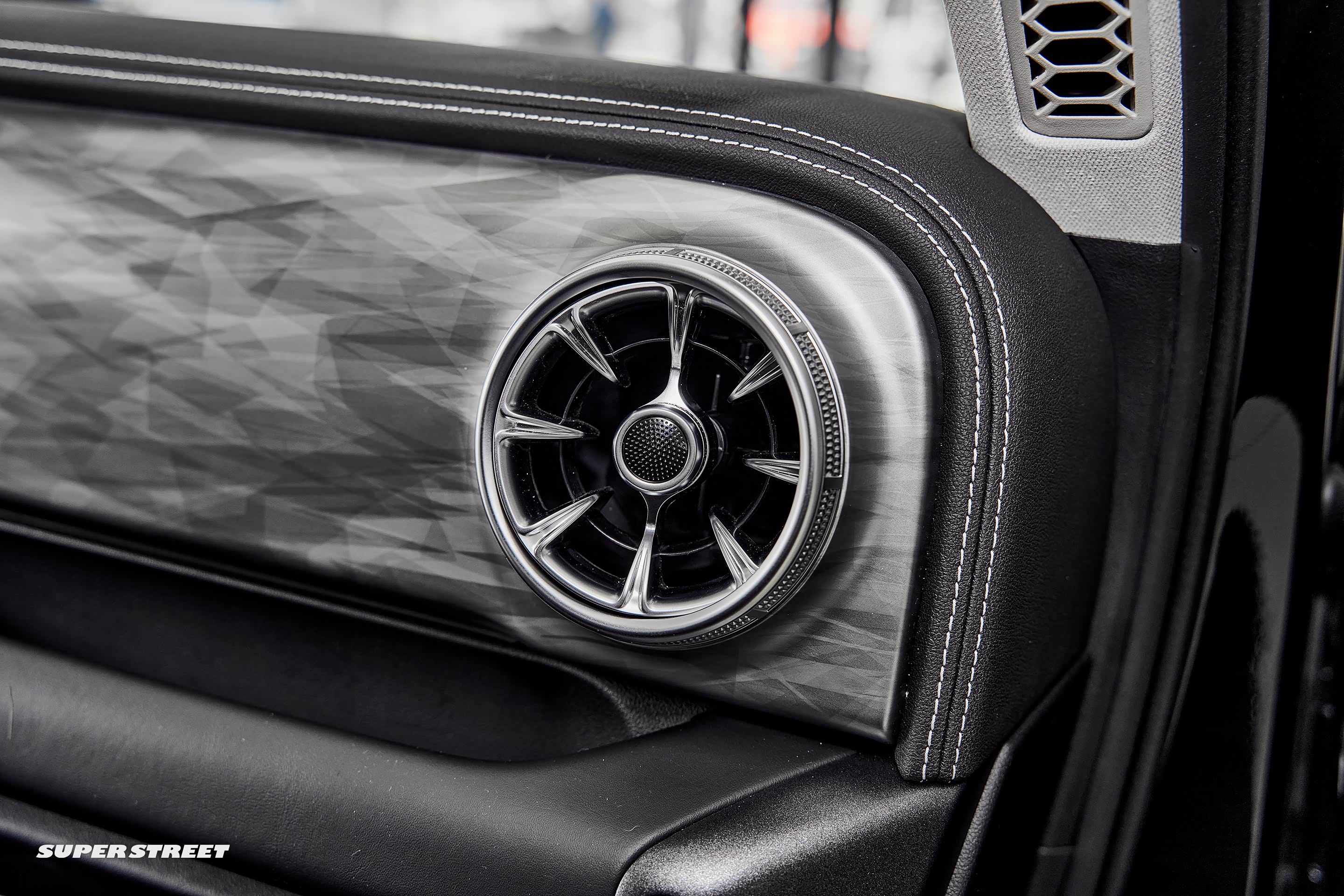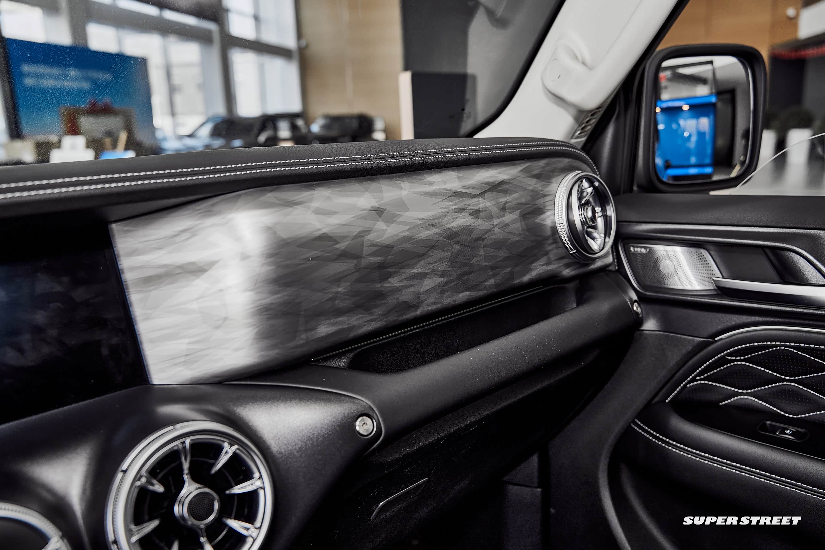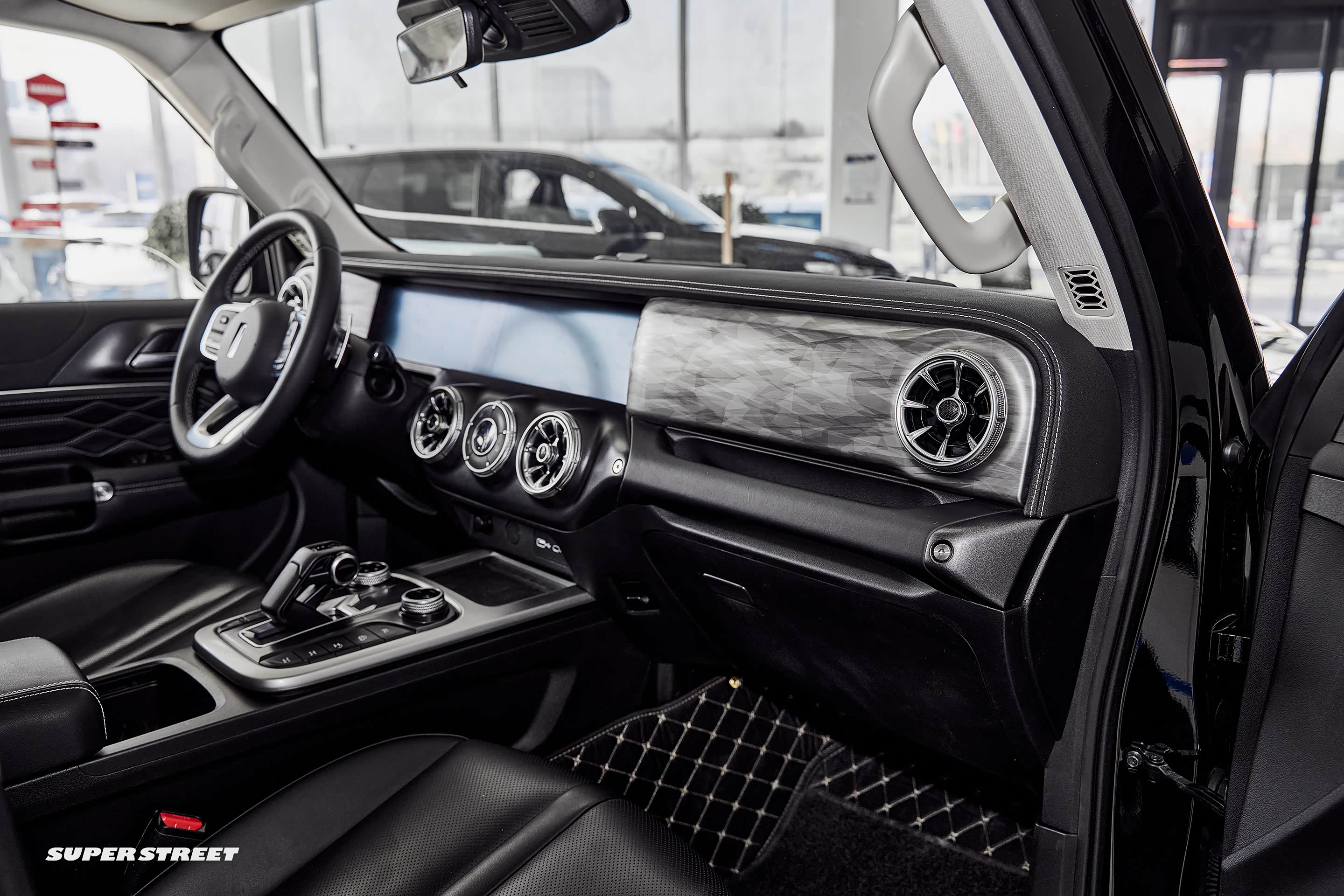 副驾驶设置了越野车型上常常会出现的前扶手,在越野路面还是很实用的,副驾驶前面的面板表面纹理像烟雾一样,看着还是很高级的,这里如果可以根据车主的喜好更换不同的面板那就更有特色了。