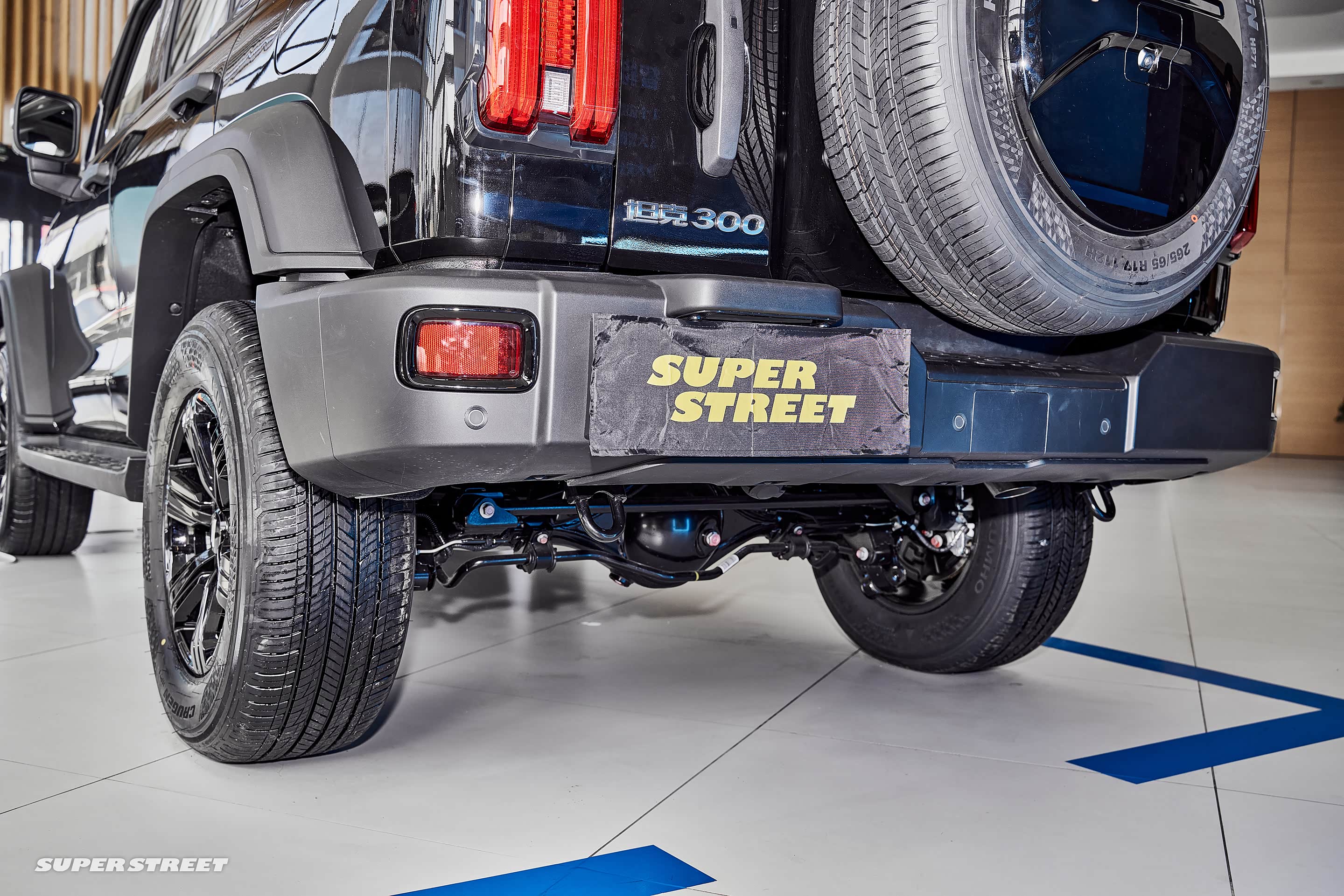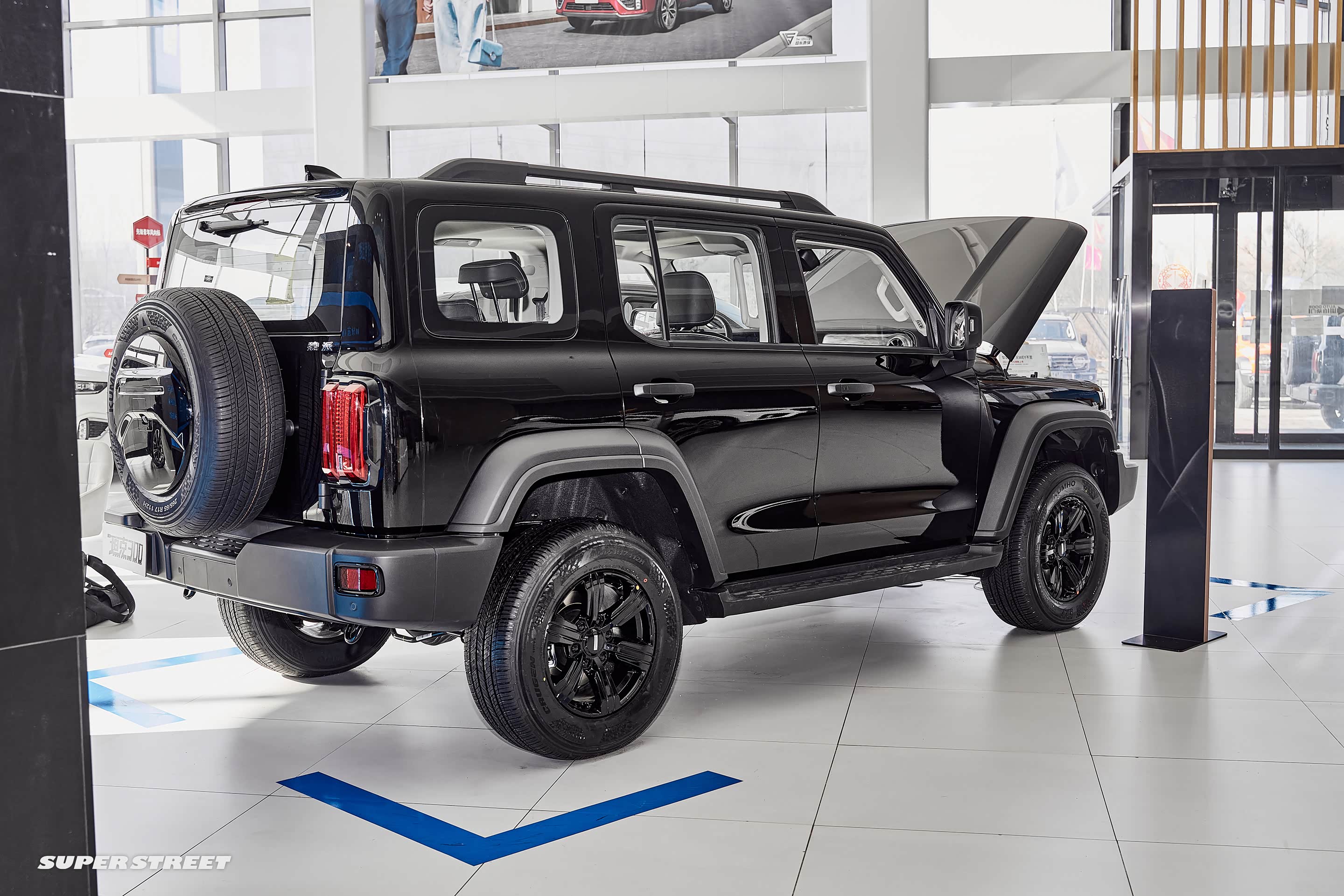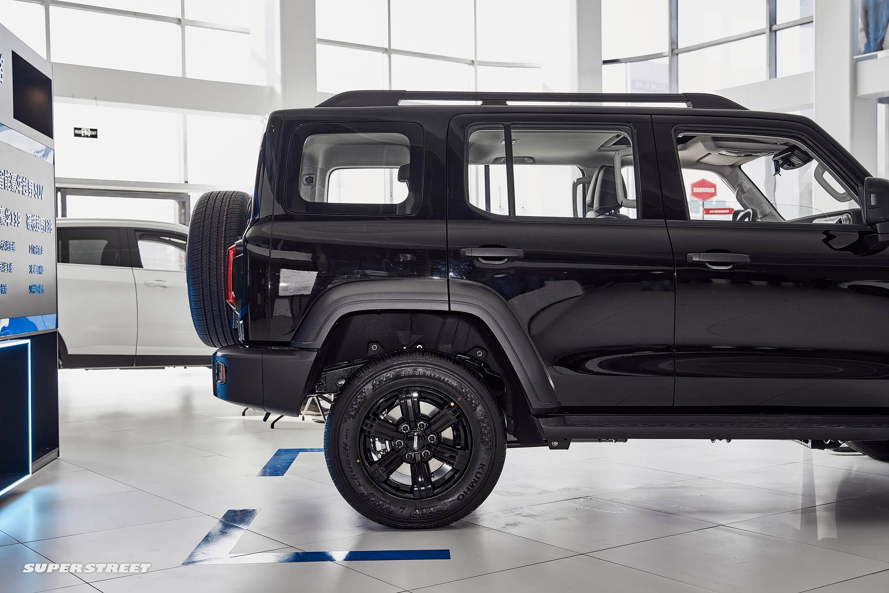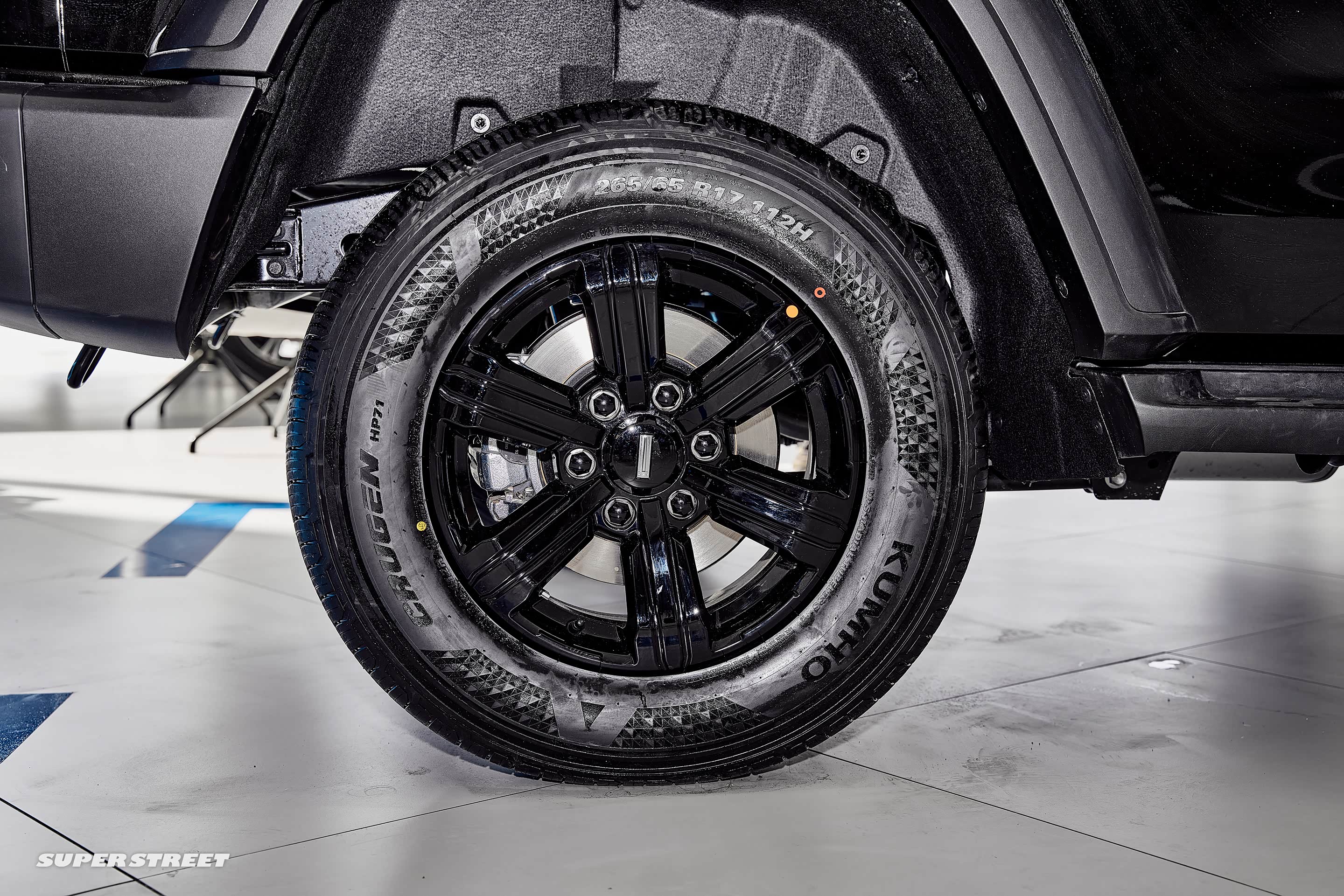 这台展车配备了锦湖(KUMHO)Crugen HP71 SUV专用轮胎,规格为265/65 R17,强化了舒适的行驶性能和静音性能。如果需要极端越野,还是需要更换一套适合越野穿越的轮胎。