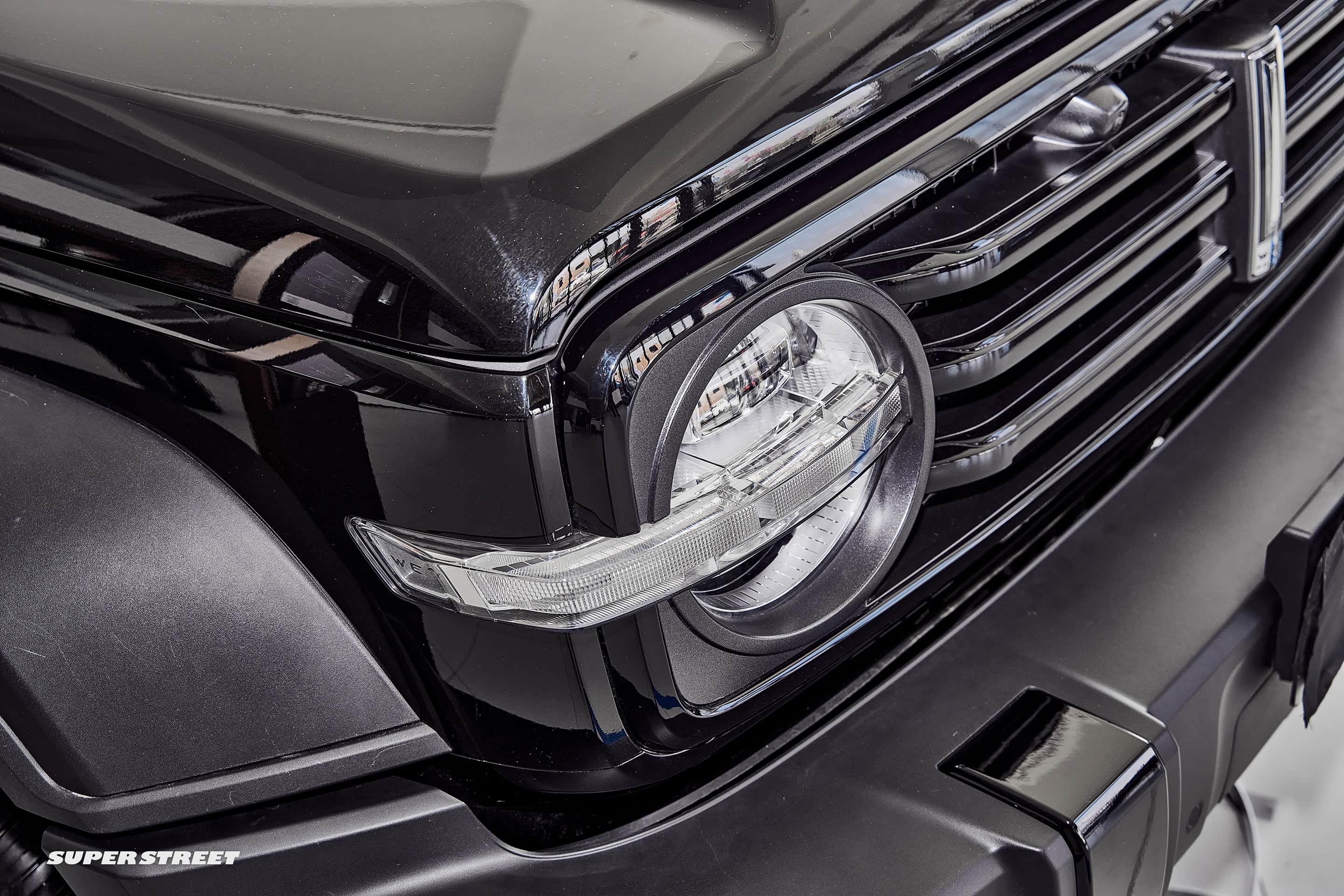 经典的越野车造型,方盒子硬朗的外观,车头部分很有辨识度,配备矩阵式LED自动大灯,HMA远近光自动切换、LED日间行车灯,大灯向外延伸的设计是亮点。