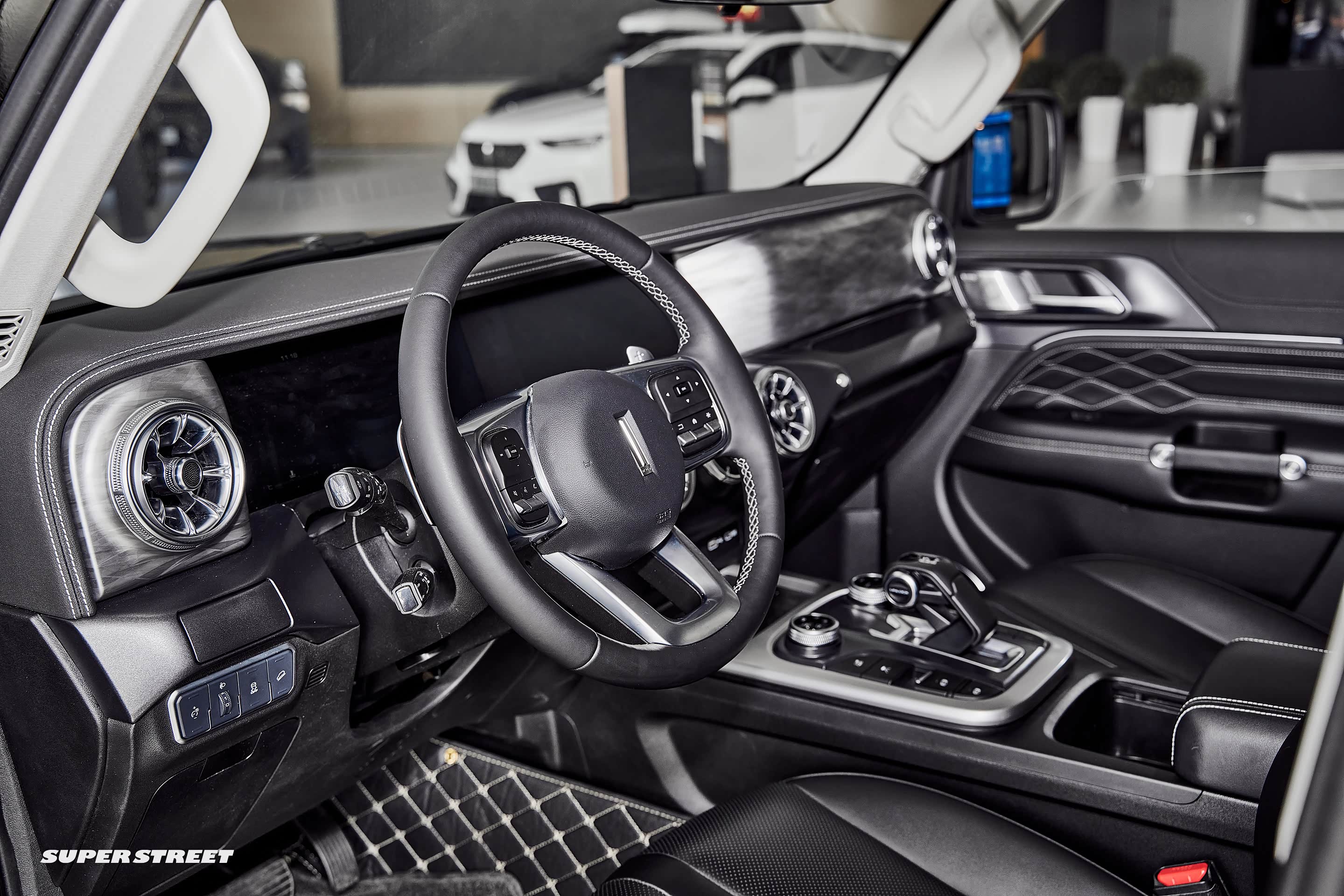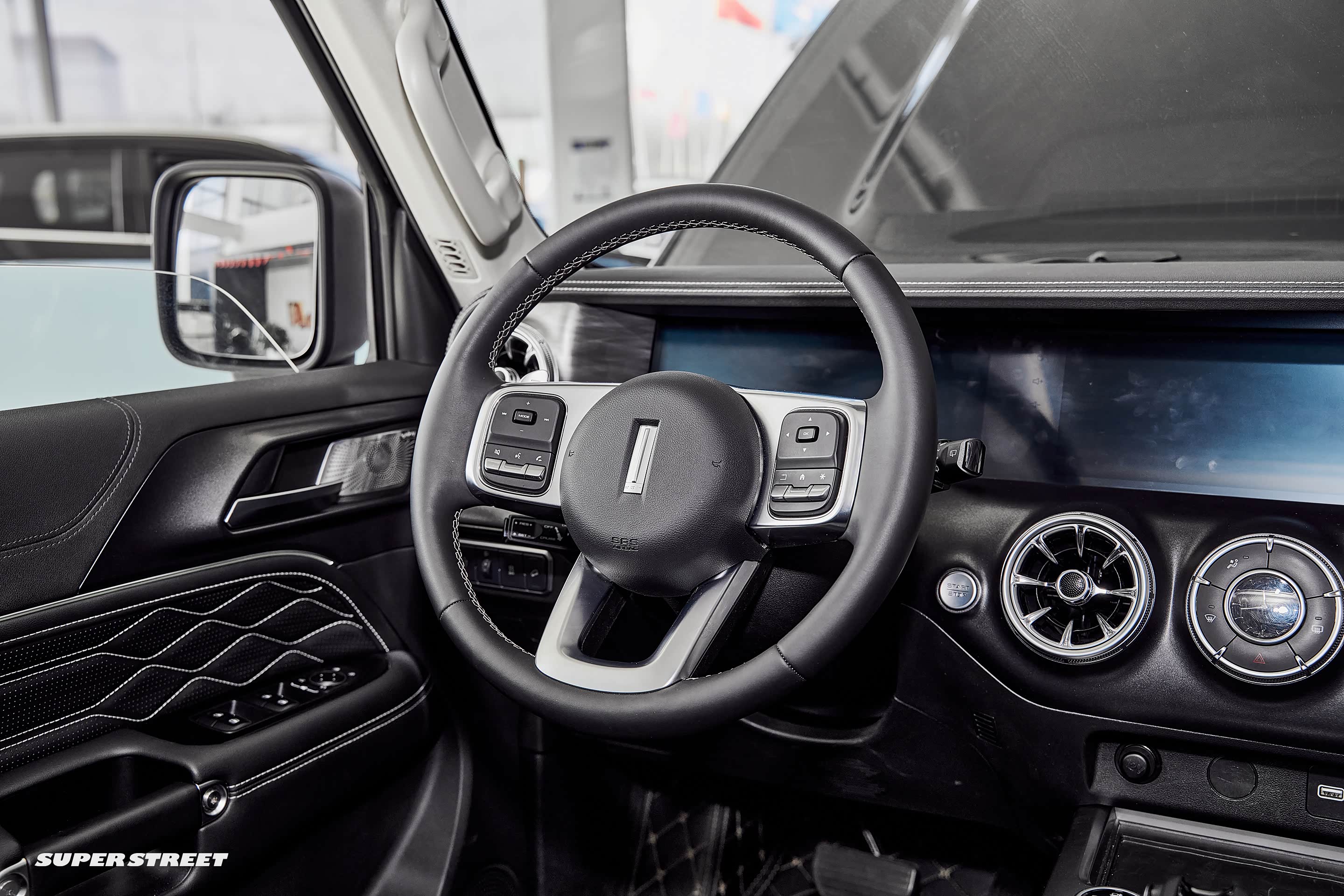 坦克300的内饰设计是我非常喜欢的款式,线条硬朗,整体看起来比较时尚,也很规整。圆形的空调出风口做工也比较精致。方向盘中间控制区域的造型很粗壮。