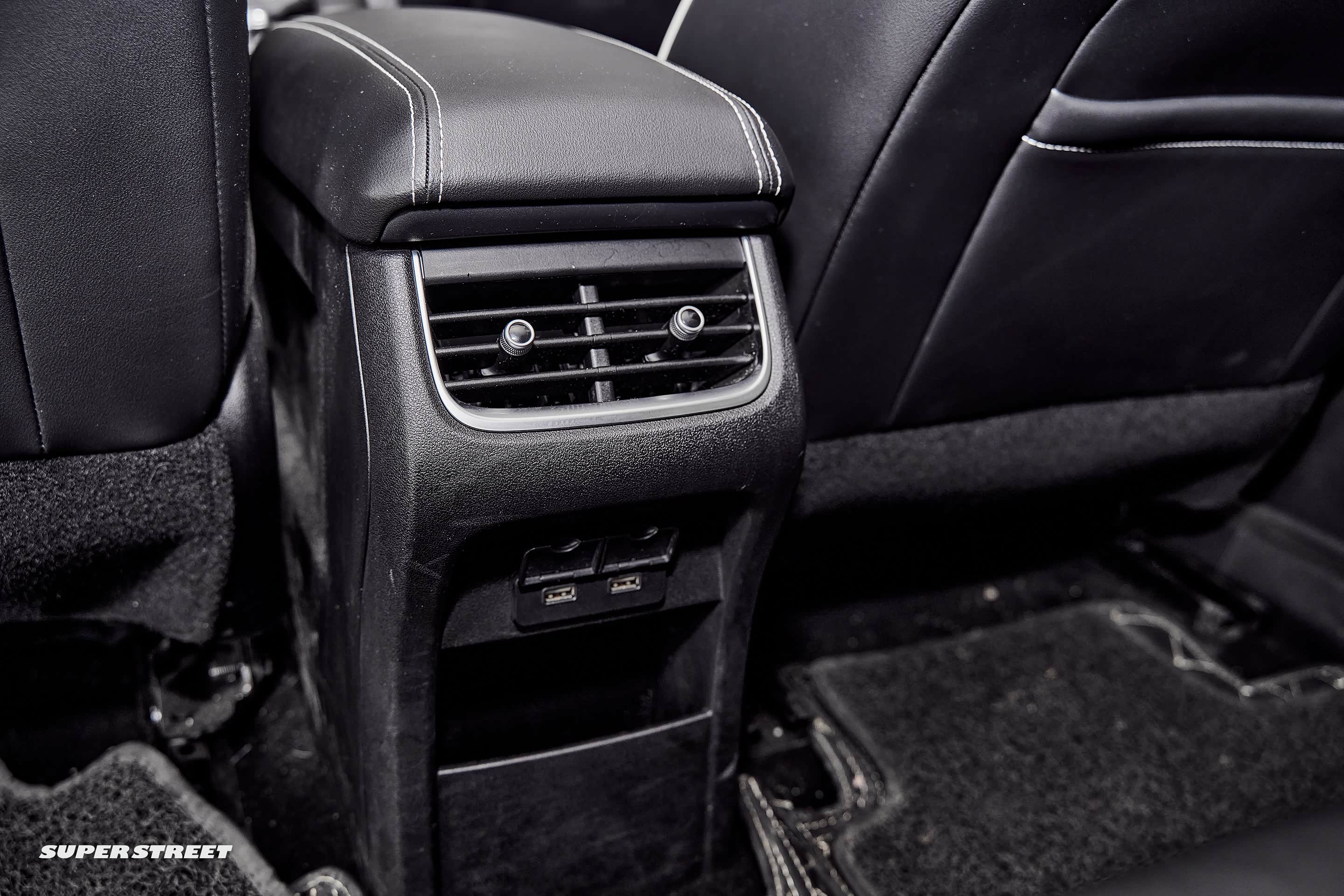 后排带有空调出风口,但是并没有温度调节按钮。下面是两个USB接口,方便为后排乘客充电使用。