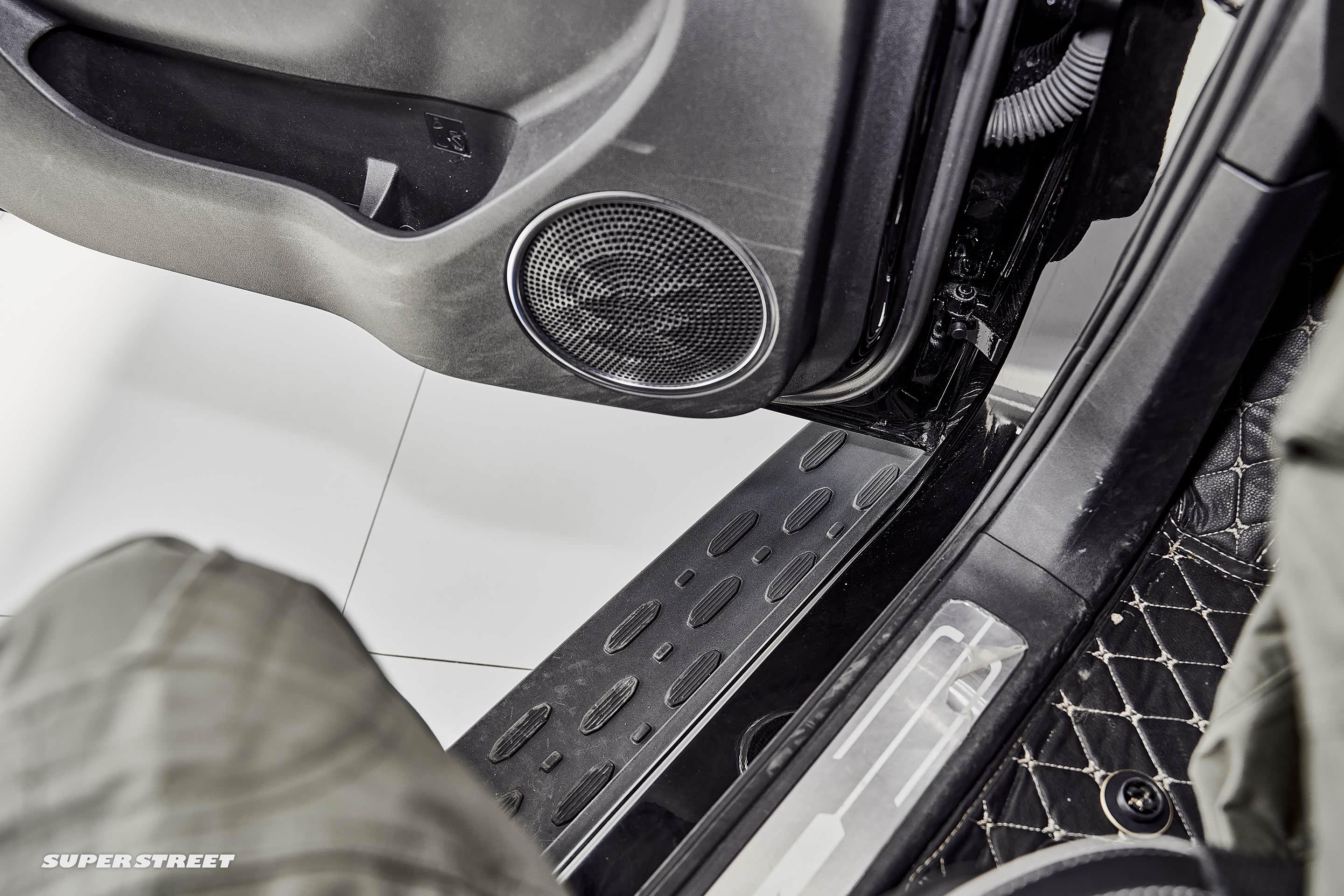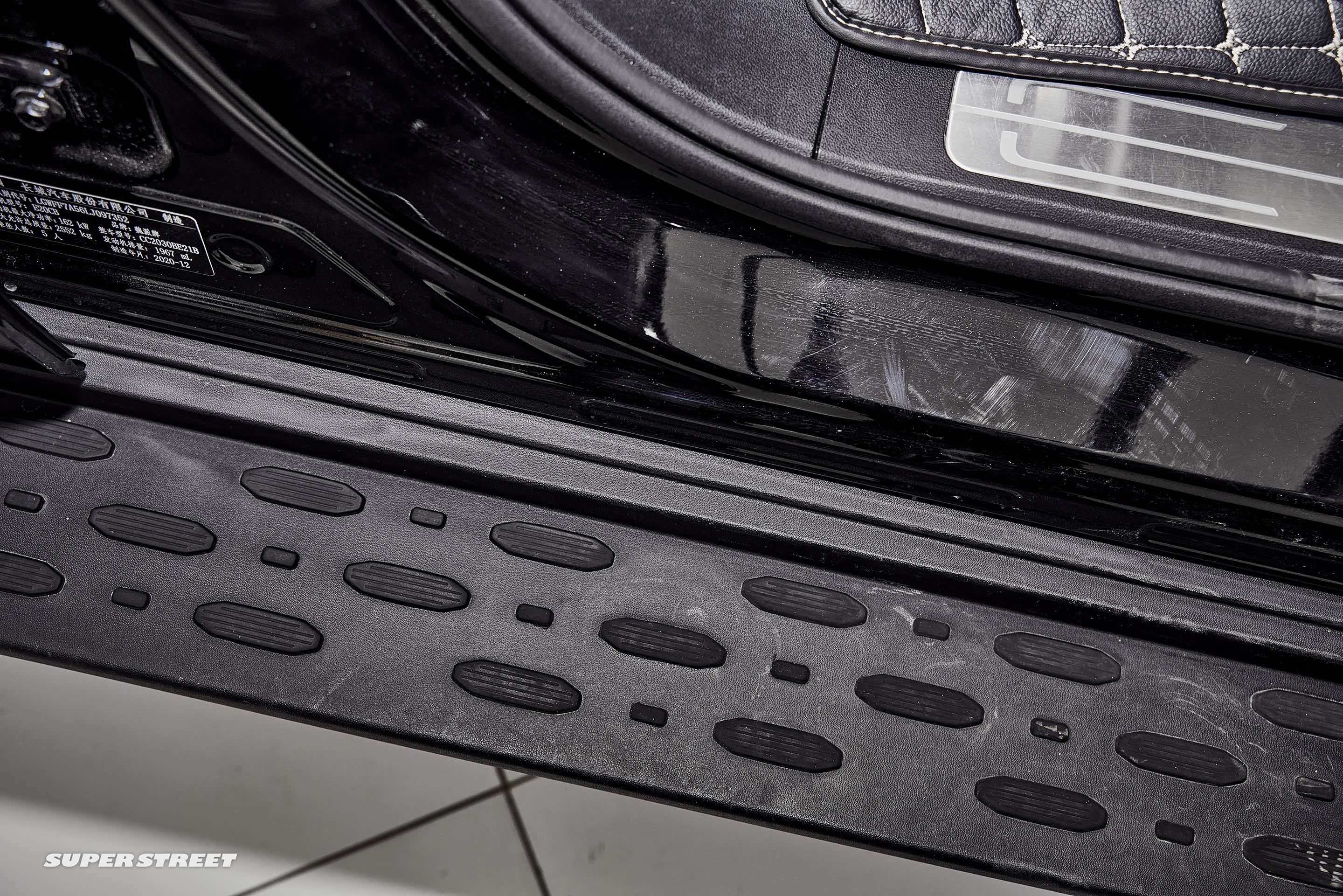 原厂配备脚踏板,方便上下车,椭圆形的纹理可以起到防滑的作用。