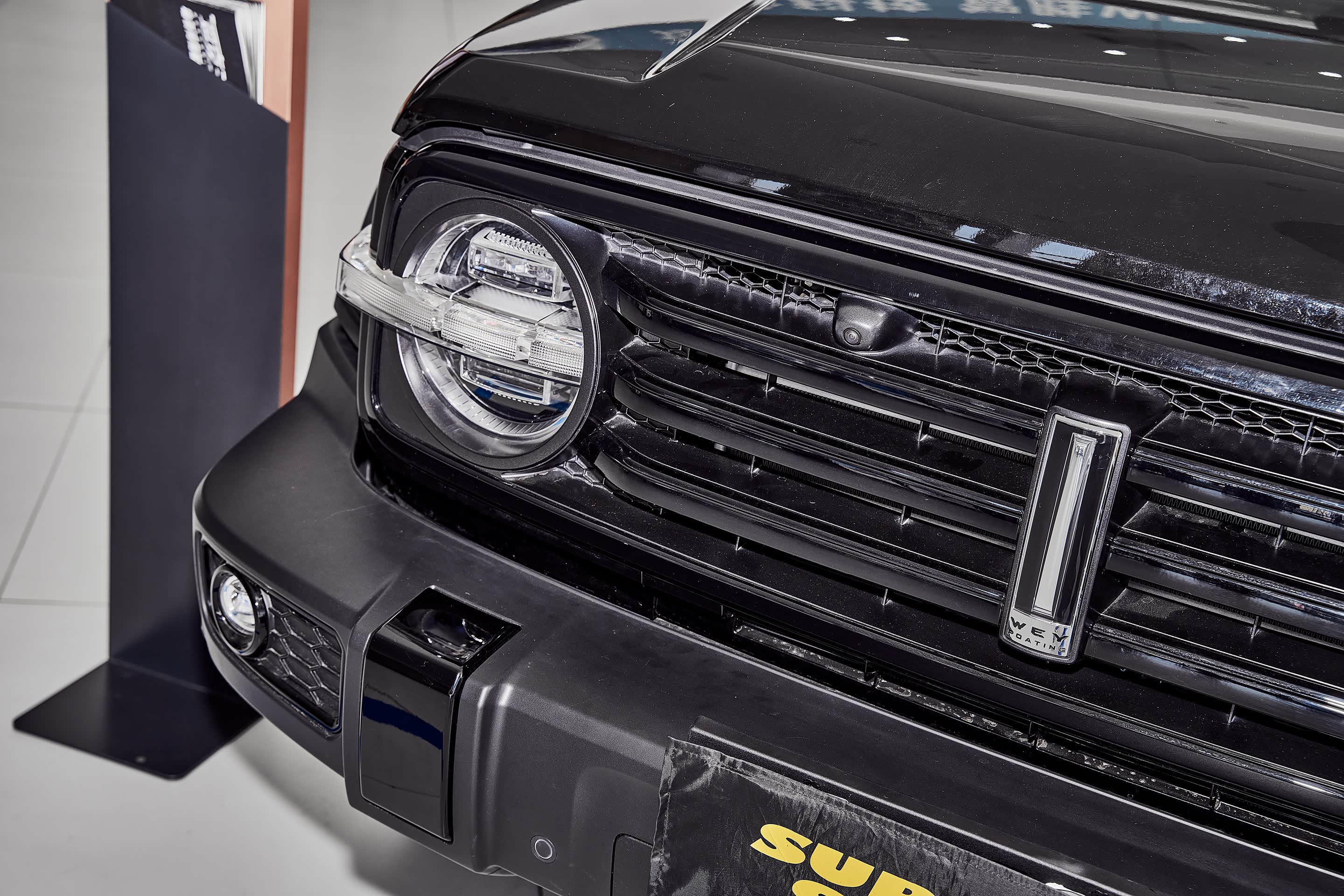 从这个角度看去,整体设计还是很威武的,外观设计我觉得还是很成功的,也可以从最近的销量情况可以看到消费者对这款车的认可,在我当天拍摄的时候不仅有很多看车者,还有一些购车者,门口也停满了已经订出去的各种颜色的坦克300。