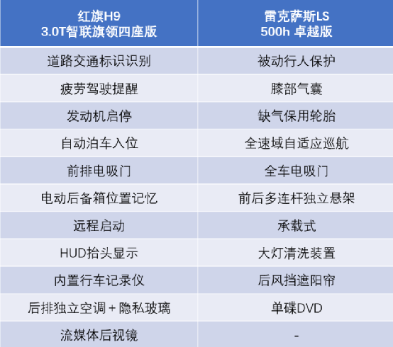 作为各自国家豪华品牌的旗舰车型,红旗H9和雷克萨斯LS主打的都是高端市场的定位。