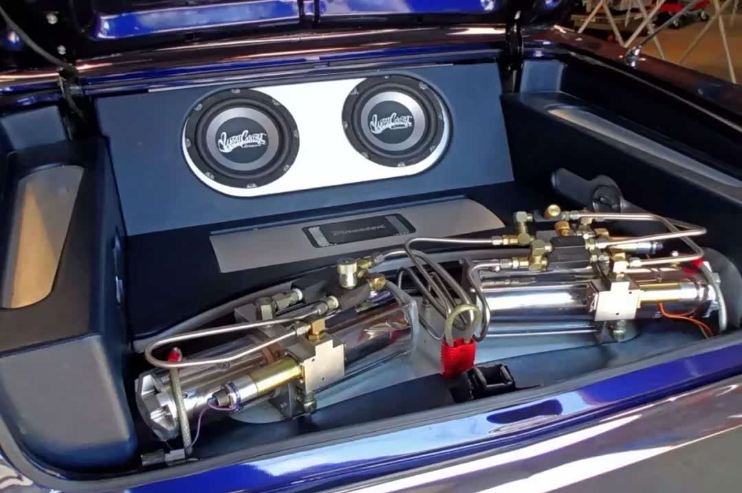 那怎么就成了“跳跳车”?毕竟降低了离地间隙以后车辆的通过性太受限,上世纪50年代末有人开始在lowrider上安装了底盘升降系统,用液压泵来实现。只要按动对应的操作开关,液压泵就会把对应的悬挂机构瞬间顶起,抬高车身。后来类似机构就被广泛应用于lowrider。由于举升的过程迅速,幅度比较夸张,所以也被戏称为跳跳车。往往不同区域的举升机构可以相对独立操作,因此可以玩出各种花式动作。科比的这台Impala就装备了5个液压泵,配合绞牙避震,显然具有很高的可玩性。