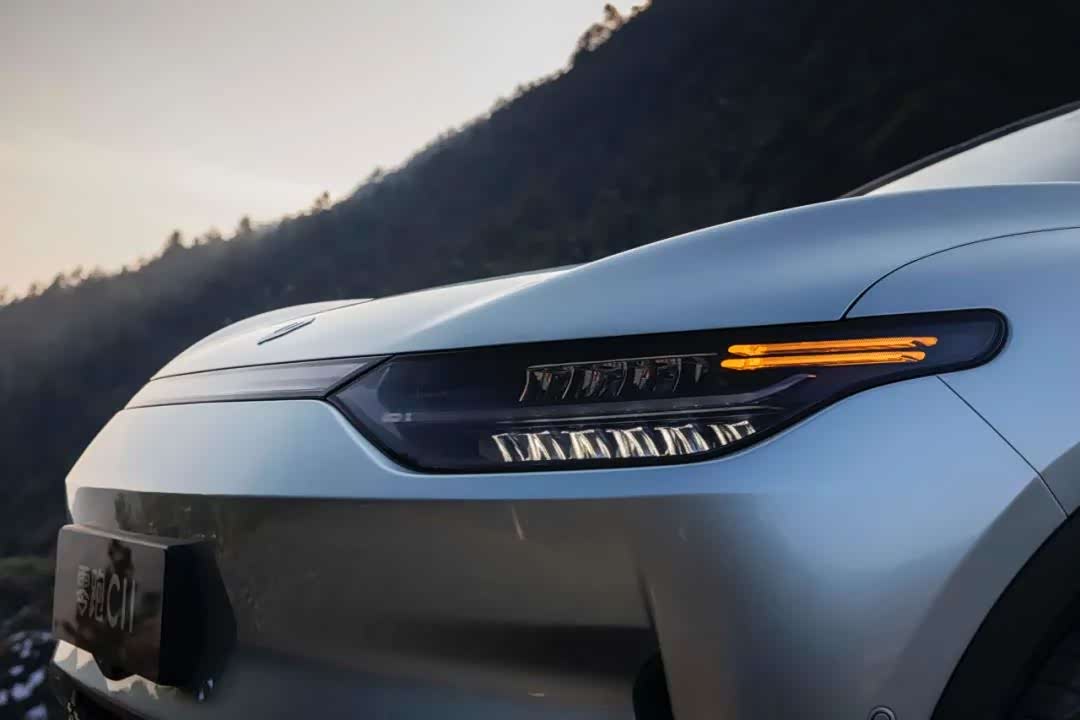 如何为C11打造出充满数字科技的前脸,看来零跑肯定动用了两拨人马。这第一拨搞艺术的让其前脸曲面特征凹凸有致,层次丰富。引擎盖拱顶线条设计虽凸显了纯粹动力与内在气质,可神来之笔终归属于那对满眼数字科技的行云流水LED大灯,与饰板配合之下的贯穿设计提升了整车视觉宽度,为前脸描上了沉稳、现代的韵味。