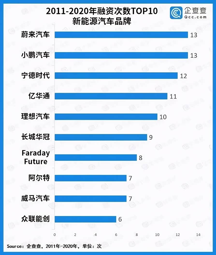 企查查统计的数据显示,从2011年到2020年,法拉第未来累计融资309.6亿元,仅次于蔚来,是融资金额排名第二的新造车企业。
