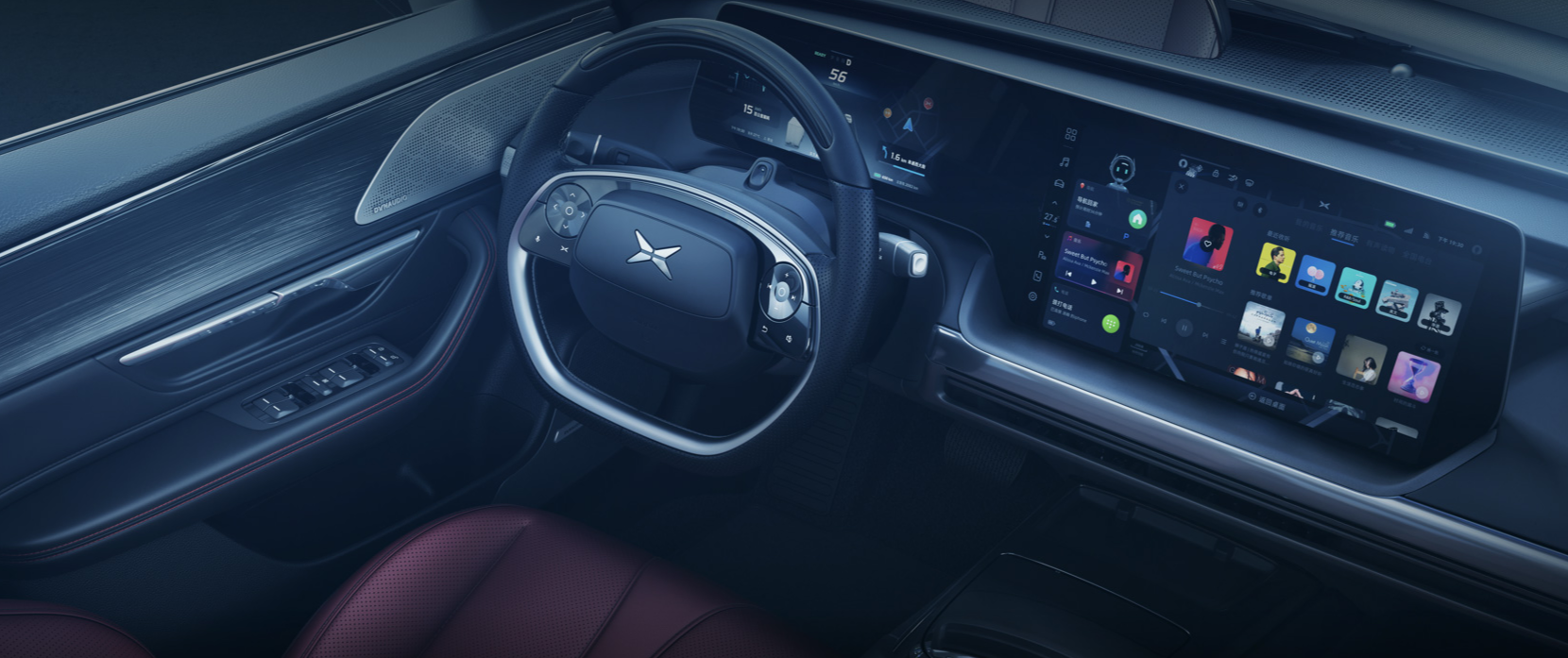 不知道是大家商量好的还是学特斯拉,仿佛电动车的内饰只有屏幕了,可能是为了宣扬未来感和科技感,整车内饰一个实体按键都没有。不过看到全车18个扬声器和升降丹拿我就知道了,没有发动机噪音,隔音很好的玻璃。p7是希望你开车的时候静静享受驾驶,沉浸驾驶,不要再折腾那些没用的按键了。开车就要专注!专注到它在你头枕里都藏了两个扬声器。