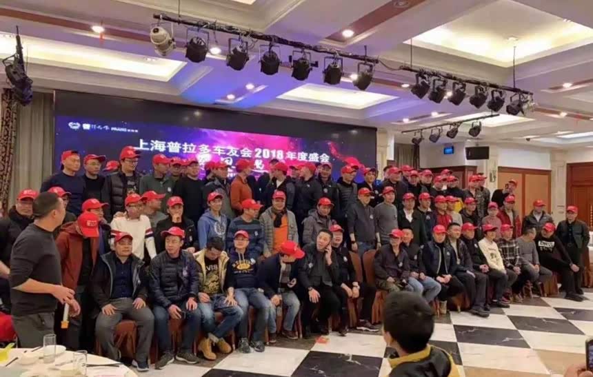 接下来画风一转,就是普拉多车友会的合影,一群穿着羽绒服的中年大叔,有的还拿着保温杯,大家聚在一起就像大型工程招标会,强烈的对比让人忍俊不禁。