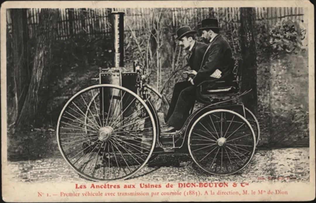 - 1883年,初创的巴黎汽车制造商De Dion, Bouton et Trépardoux推出了首款车型—— 一台四轮蒸汽机汽车,这可能是全球最早使用皮带传动的汽车。此后,该公司曾一路成长为全球最大汽车制造商。