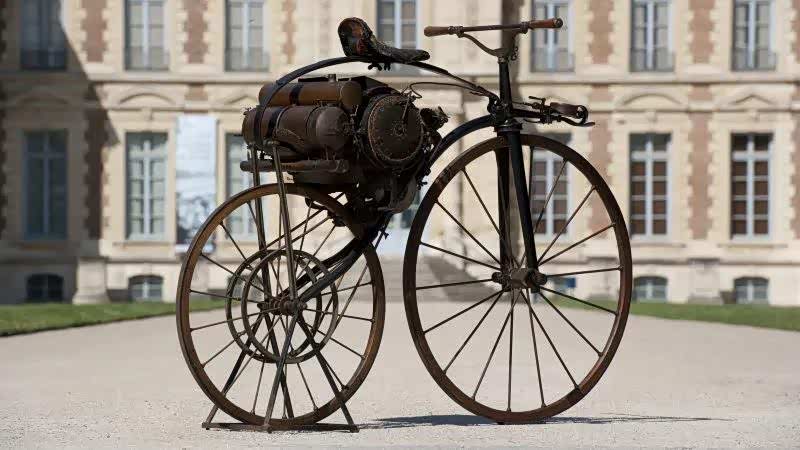 - 1869年3月16日,法国发明家Louis-Guillaume Perreaux提交了一份高速脚踏自行车专利——蒸汽机与脚踏自行车的结合——全球最早的摩托车就此诞生。尤其制造的其中一台作品现收藏于法国法兰西岛博物馆。