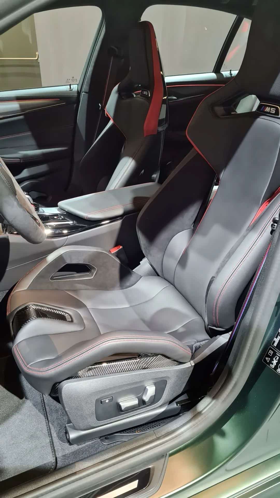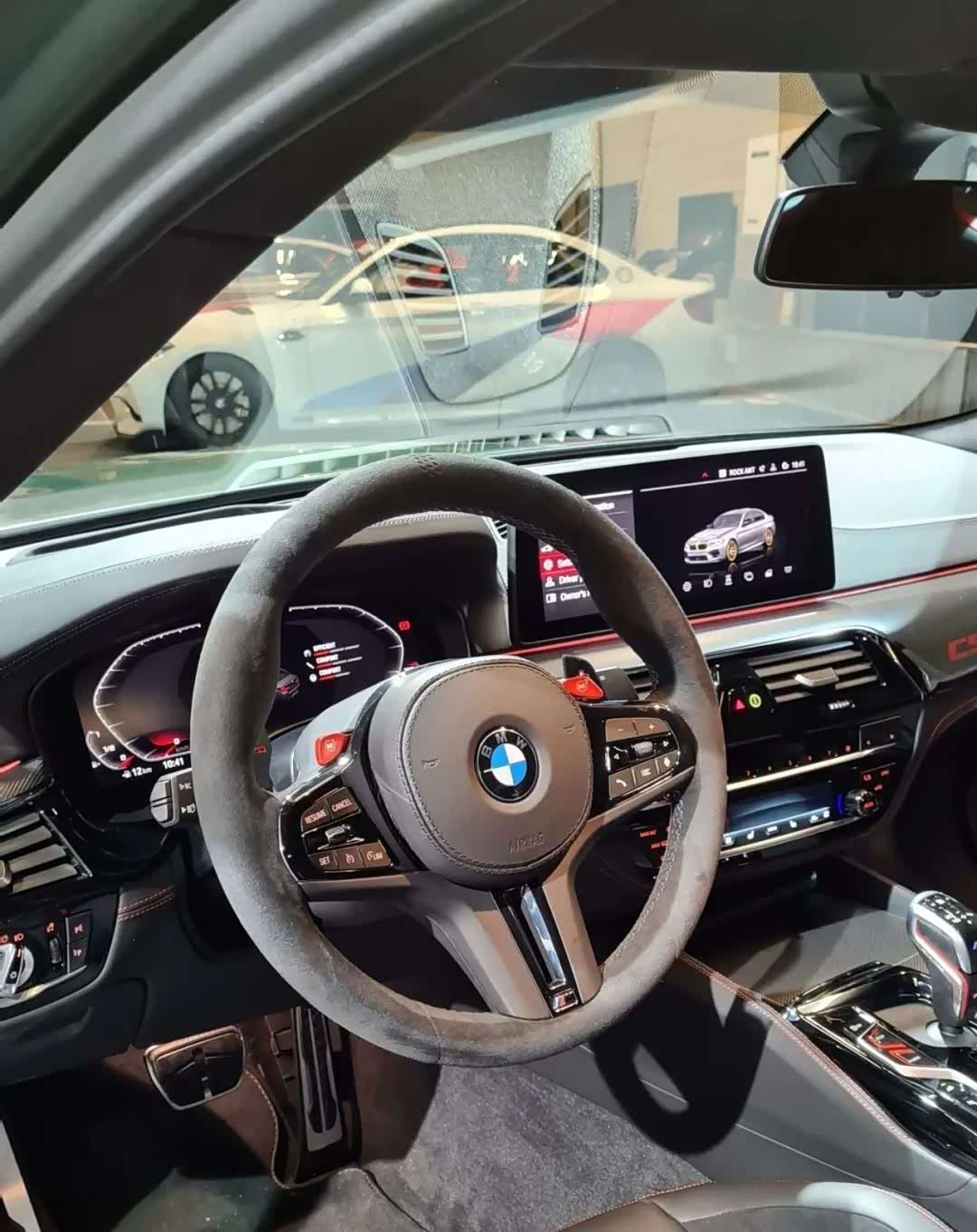 内饰的整体设计语言变化并不大,做工更加精细,主要改变就是带有翻毛皮材质的方向盘、四张桶型座椅以及其他各处的“M5 CS”专属标识。同时保留了方向盘上独立的红色M1/M2按钮、别致的档把、新的SETUP和M Mode按钮。