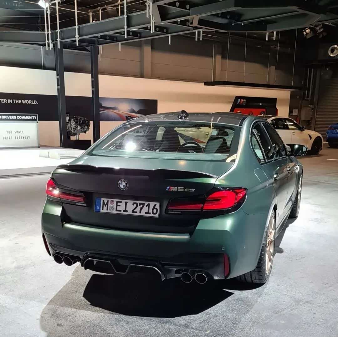 宝马M5 CS的尾部增加了碳纤维的尾翼和下扩散器,维持了双边共四出的排气布局,“M5 CS”的尾标也变成了金黄色的,凸显了个性。