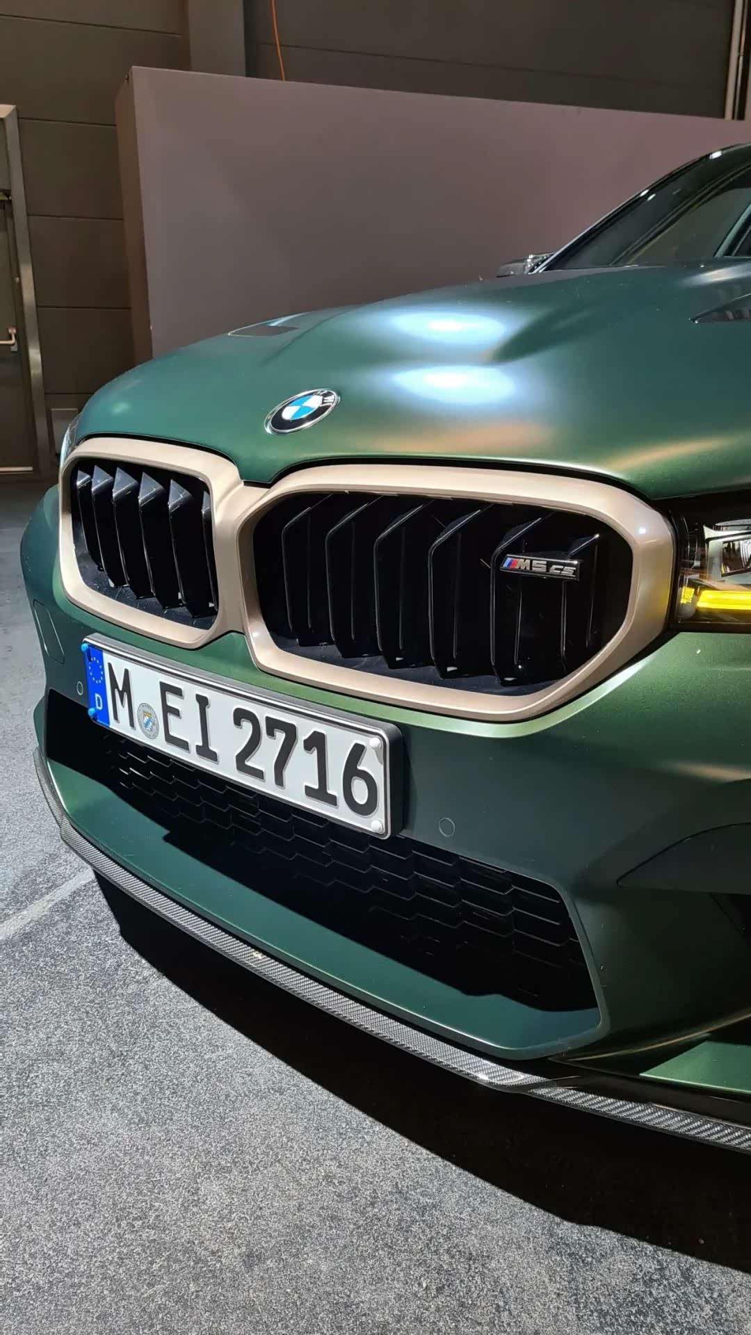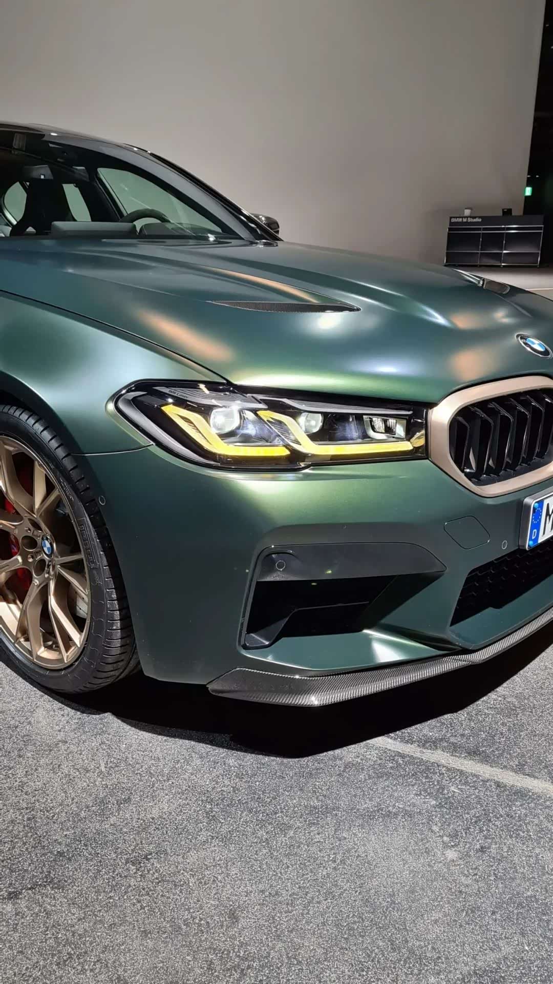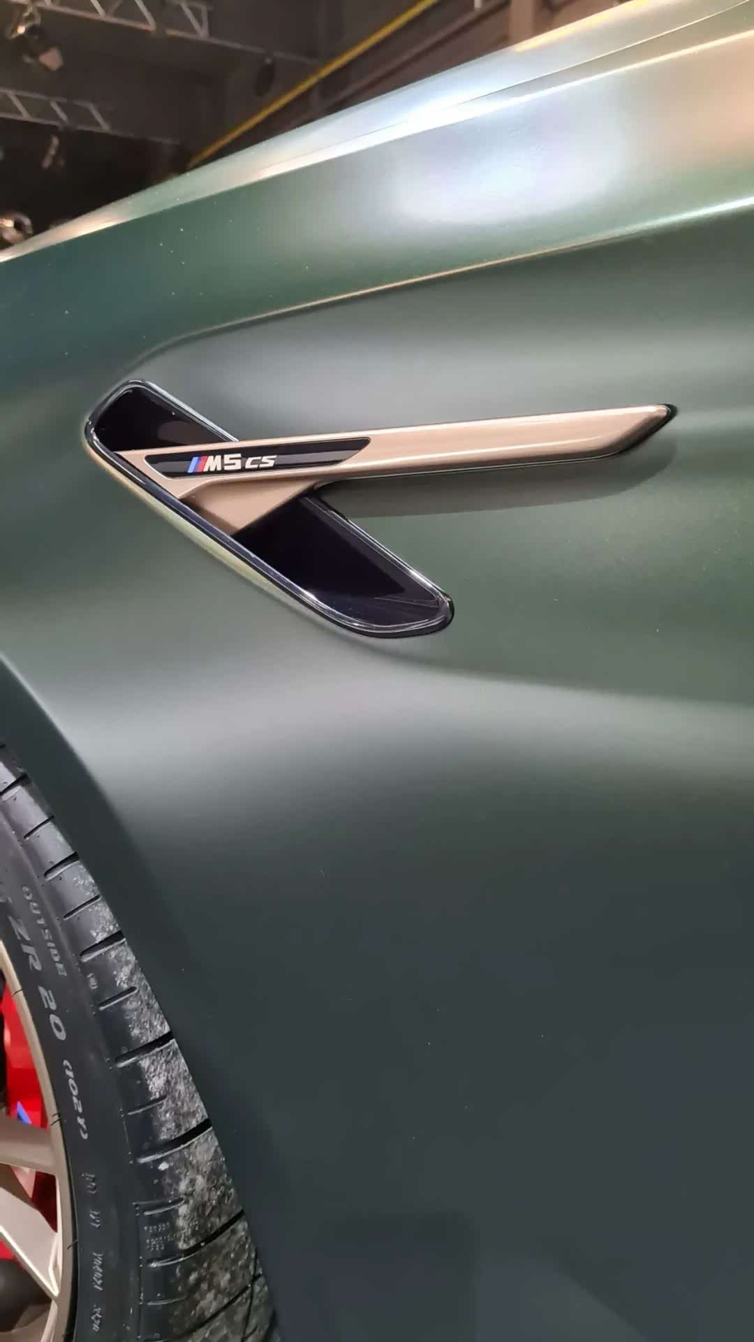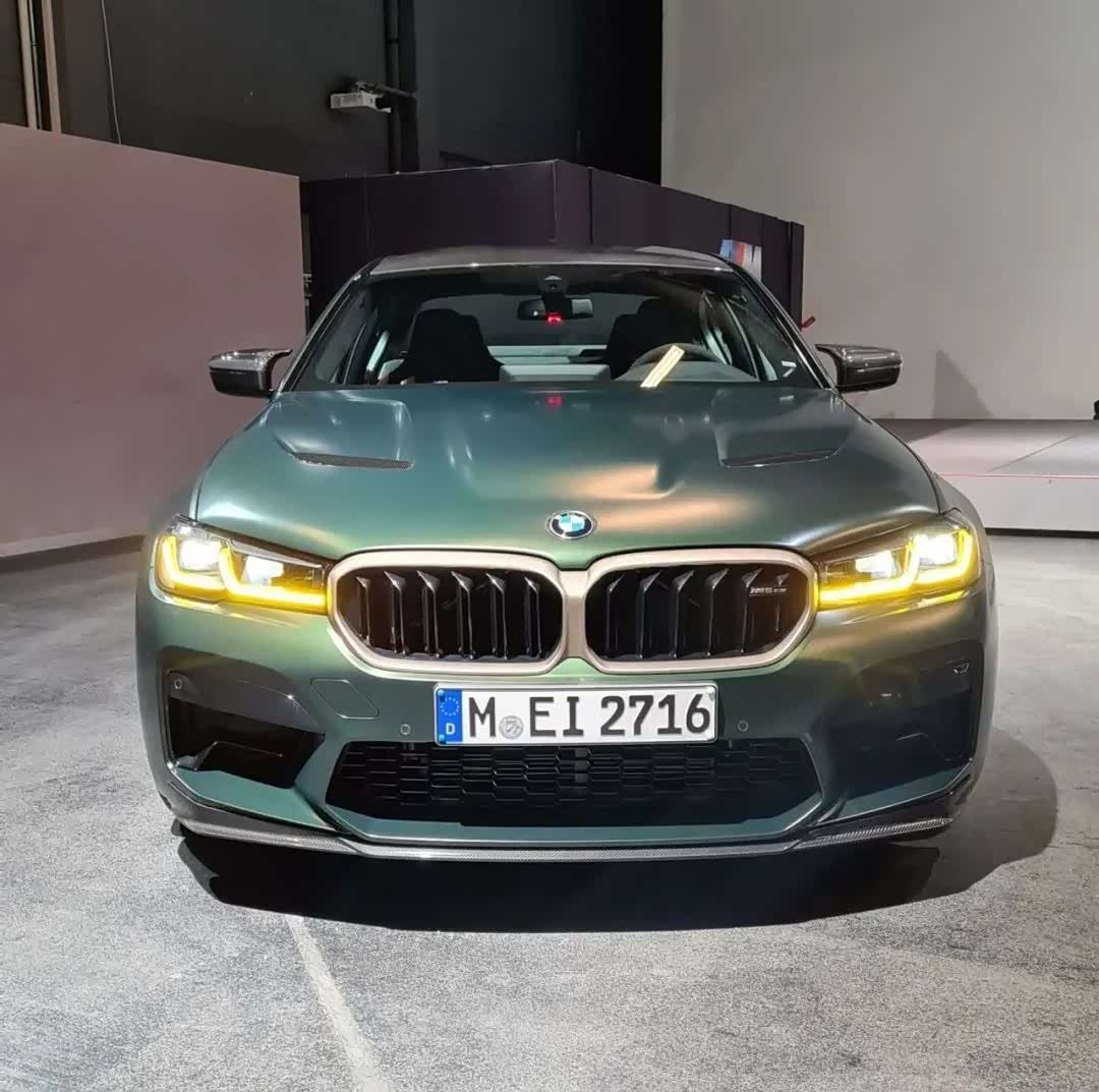宝马M5 CS的外观比M5雷霆版更加激进和性能化,前脸的双肾格栅面积更大,同时配备了金色的边框,日间行车灯的颜色也变成了黄色,两侧进气口很大,最下方还有个碳纤维的饰板。