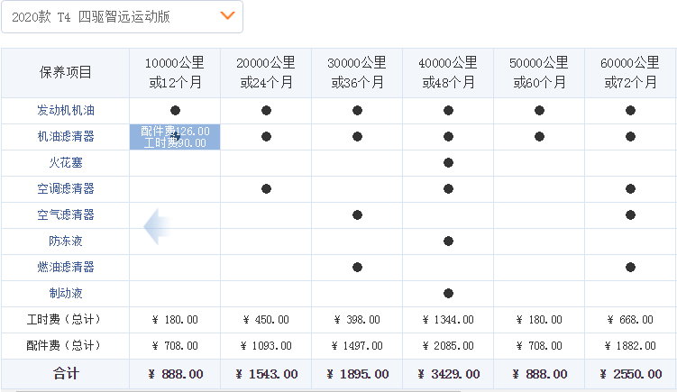 沃尔沃XC40的保养费用以上图为参考,行驶60000公里的保养费用大约为1.12万元左右,按照一年2万公里计算,平均每年的保养费用为3700元左右。当然了,车辆的保养费用会因为车辆的具体车况和个人的用车习惯不同而有所差异。