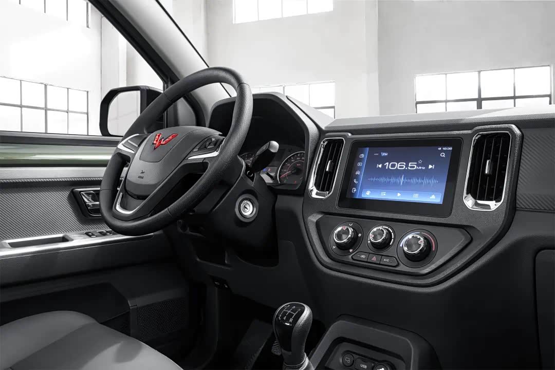 内饰方面还是以入门级皮卡的简单实用风格为主,不过加入了不少镀铬元素来提升精致感。同时配备了8英寸触控屏幕支持在线导航、音乐视频和倒车影像。在安全方面,则提供了安全气囊和博世 9.0版ABS+EBD,属于常规操作,并没有太亮眼的表现。