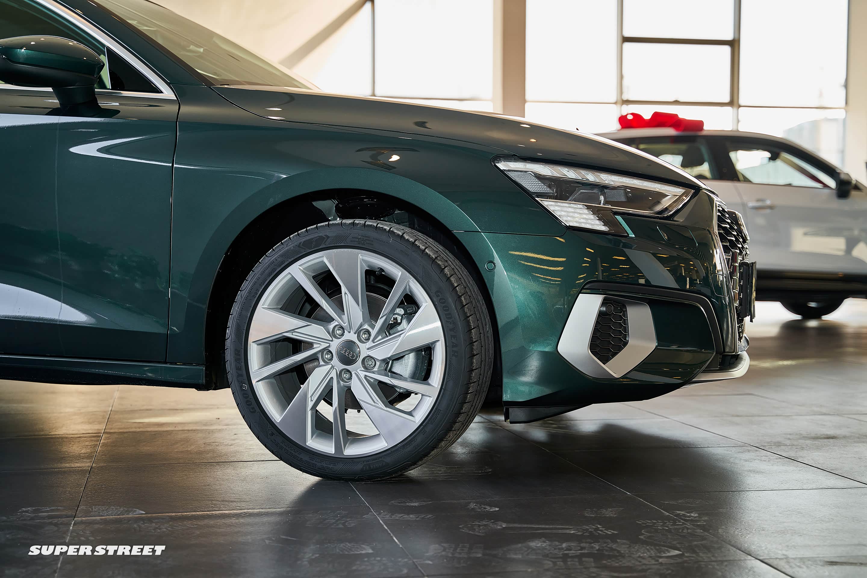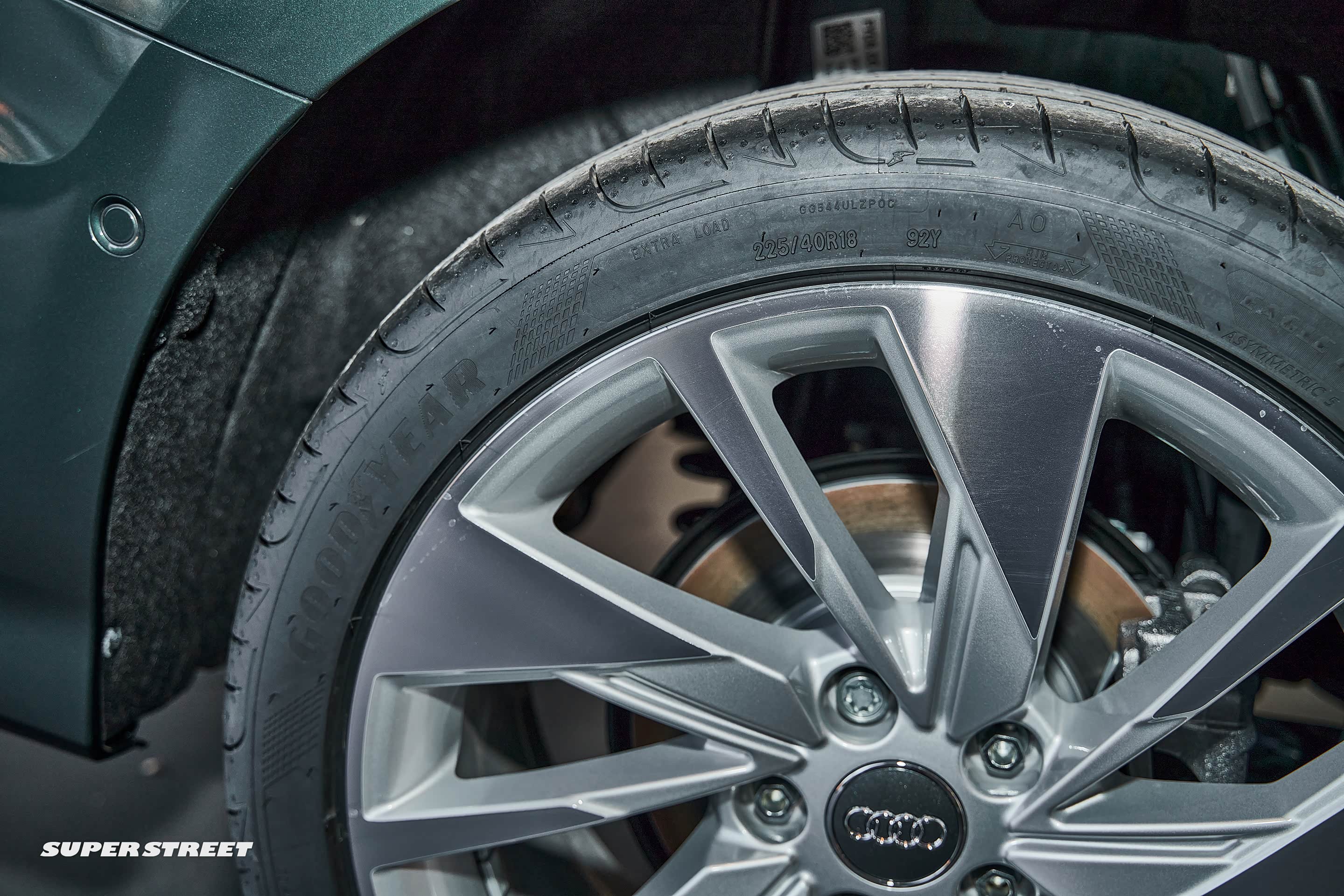 奥迪A3L时尚及豪华以上车型选用固特异GOODYEAR的225/40R18规格的轮胎,5辐双V造型的铝合金轮毂,旋风造型设计锋利时尚。