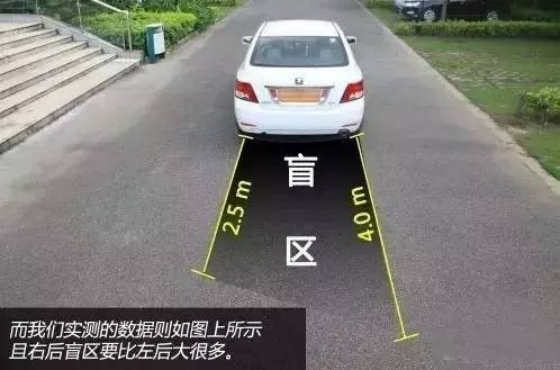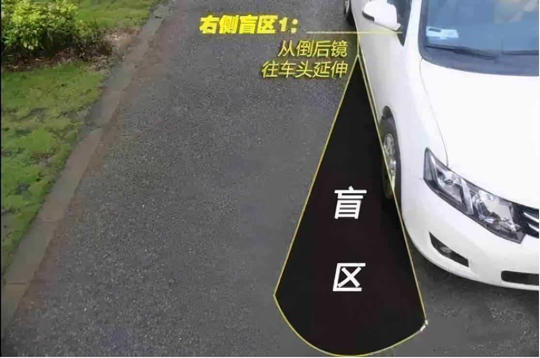 国内驾驶位设置在左边,所以车子右侧的盲区比左边多。左侧只有A柱遮挡形成的小盲区,但右侧则有两个地方:一个同样是由于A柱遮挡造成的盲区,但因为距离原因,相对左侧的区域会显得稍大;另外一侧是靠近右侧车身旁边、车子倒后视镜往车头延伸的区域。