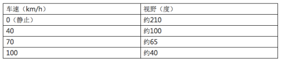 正常静止状态下,人的双眼视野可达210度,但是真正看清晰的角度只有70度。而在行驶的汽车上,车的快速移动会让视野变得更窄。车速越快,司机的视野越窄,中速时视野约为65度。再加上车的高度限制,司机对过矮的障碍物很难看清楚。
