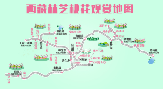 今年林芝桃花观赏最佳时节大约在3月15日到4月20日。整个桃花季,林芝桃花将从察隅、波密开始盛开,沿着318国道一直向西,随后巴宜区、米林县、朗县及工布江达县的桃花也将漫山遍野铺满山坡。小编这就剧透一波今年的最佳赏花C位,助大家成功赏花一臂之力!