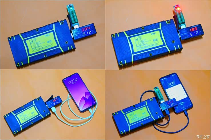 接下来我又用手机+1A/2A电阻+电流电压测试仪,对这款应急电源的5VU口的输出进行了测量。测量结果显示输出电压始终大于5V十分的稳定,单口输出电压会根据用电设备需求自动调整电流。满足给手机及平板电脑等5V设备进行普通充电的需求。