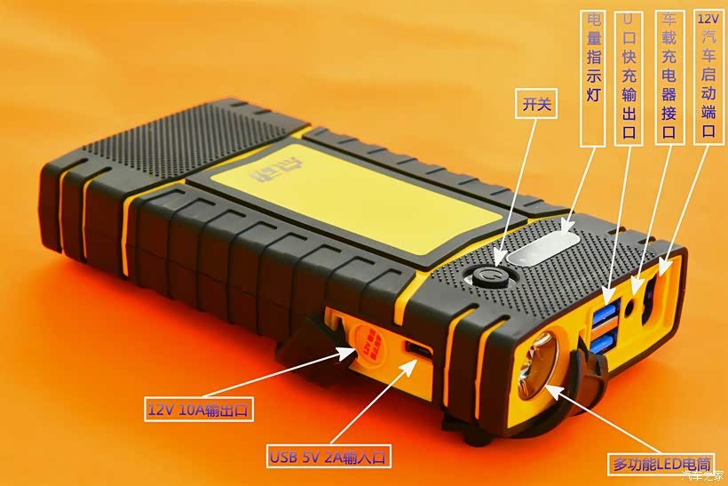 3、能够给手机智能充电、还有便携车载冰箱接口设计。双输入充电口设计等等使这款汽车应急电源的功能更加强劲多用。特别是双U口输出设计,能当充电宝使用。方便车主最大化利用此款应急电源。
