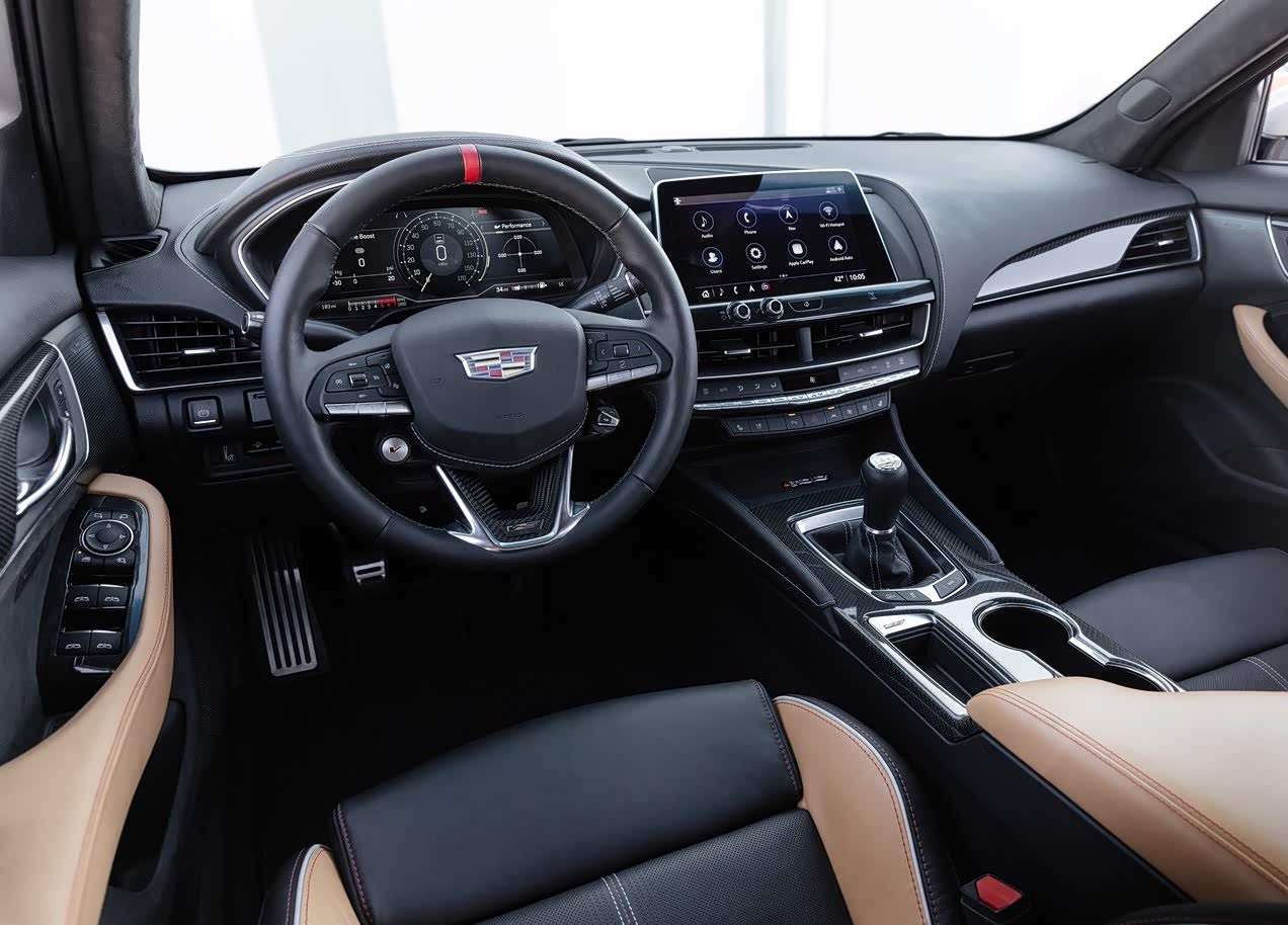 不过这两款车的内饰倒不如外观看着那么激进,只是增加了大量碳纤维元素,而CT5-V Blackwing还提供碳纤维运动座椅。两款车的方向盘上都配备了字母V标识的金属快捷按键可以切换驾驶模式。